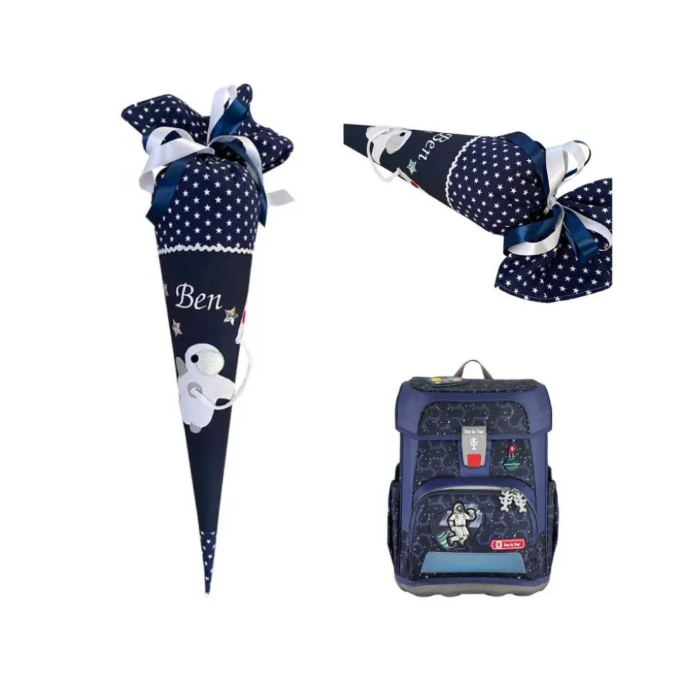 Der Weltraum – unendliche Weiten – aber jetzt ganz nah! Dank unserer neuen Schultüte Astronaut werden Träume war. Für alle Weltraum Fans haben wir diese Schultüte passend zum Schulranzen KoBärnikus von Ergobag entworfen. Exkursionen zur Milchstraße und Erkundung fremder Planeten inklusive. Und mit Lichtgeschwindigkeit direkt in die Schule. Mit dieser Schultüte ist das „Weltraum“ Outfit zur Einschulung komplett!