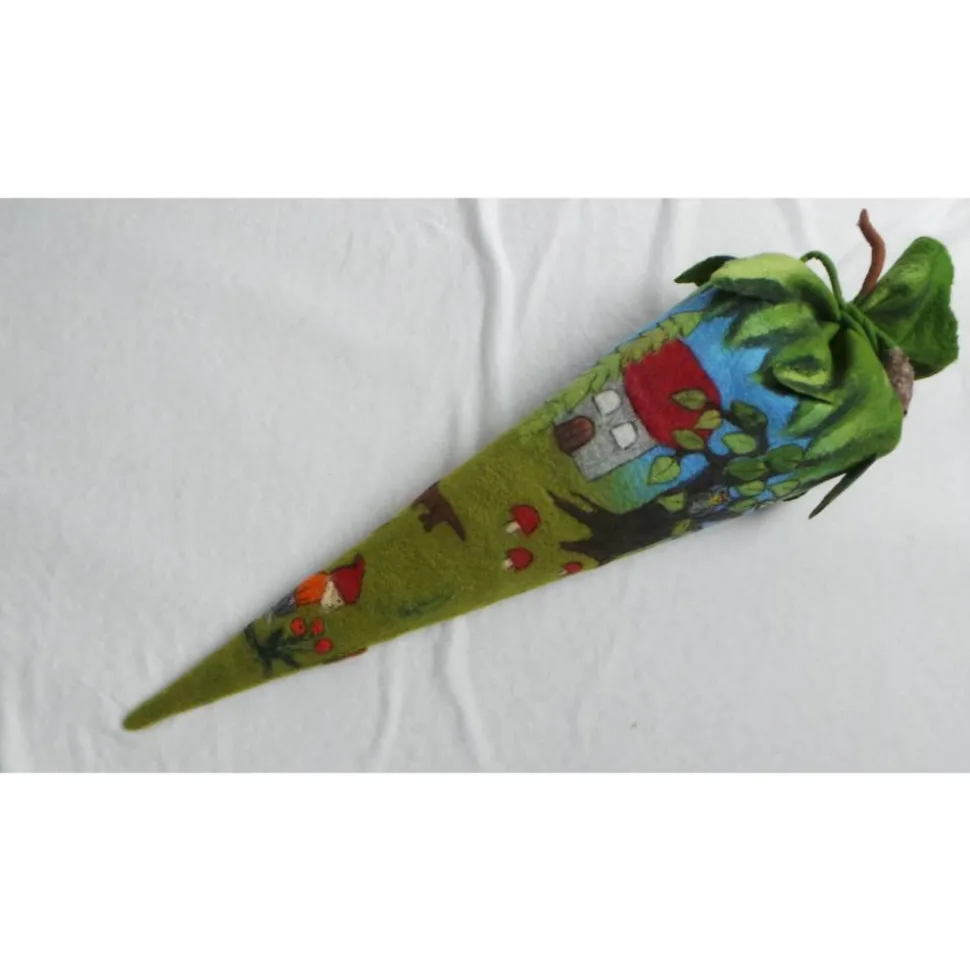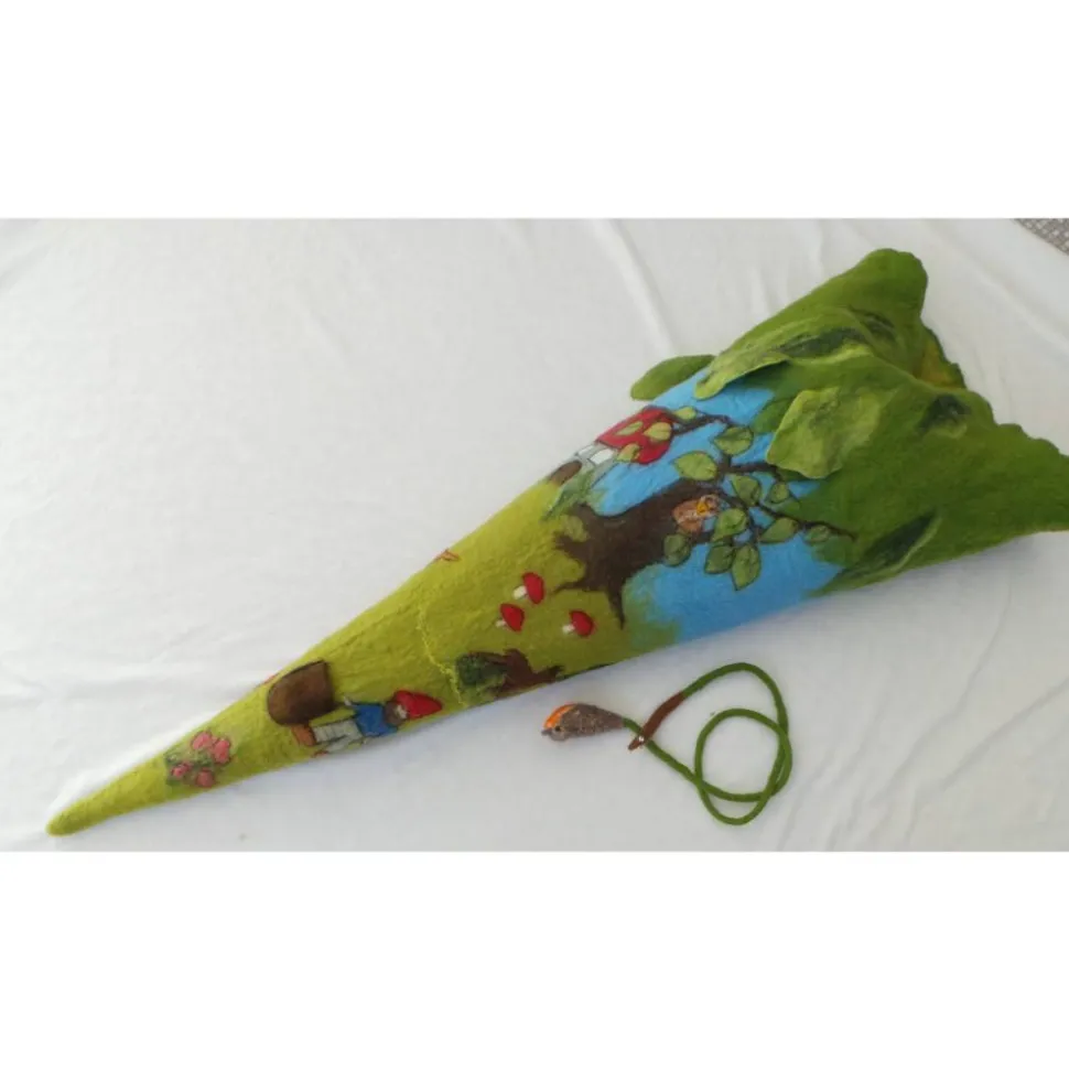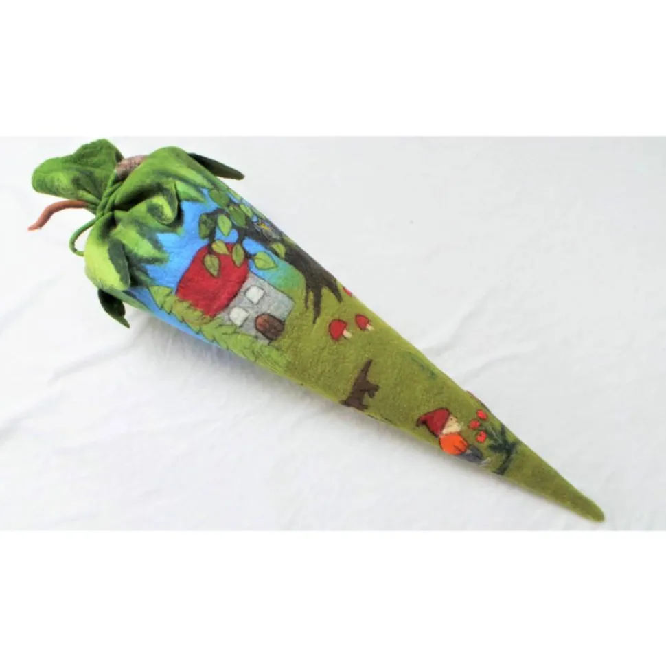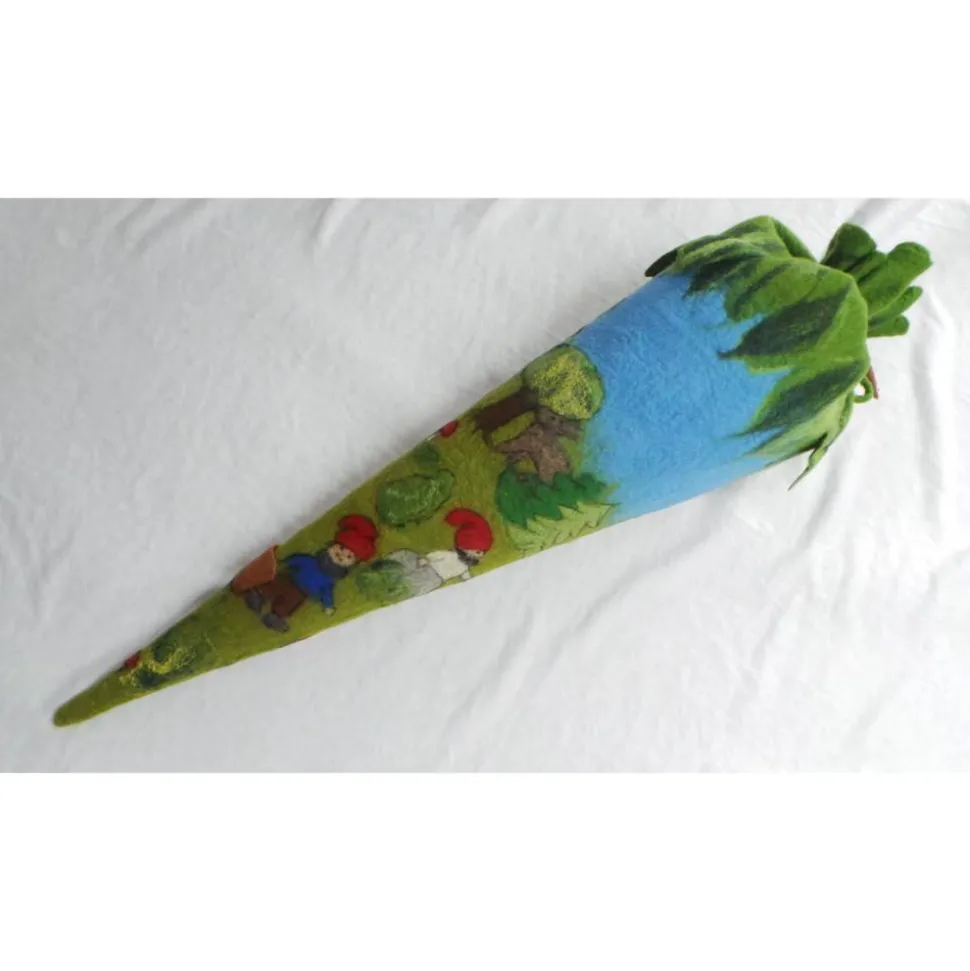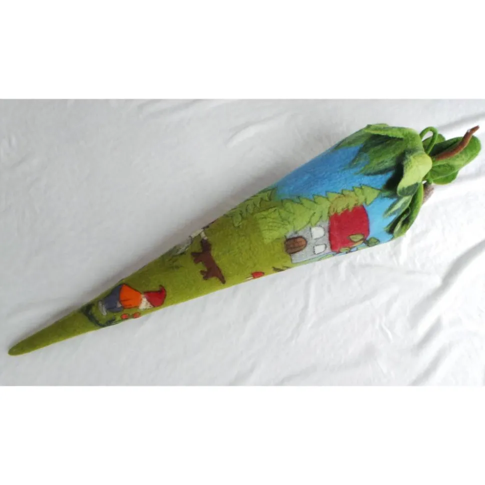 Schultüte aus Filz im Zwergenwald – handgemachte Hülle für Mädchen & Jungen, personalisierbar, als Kissen nutzbar
