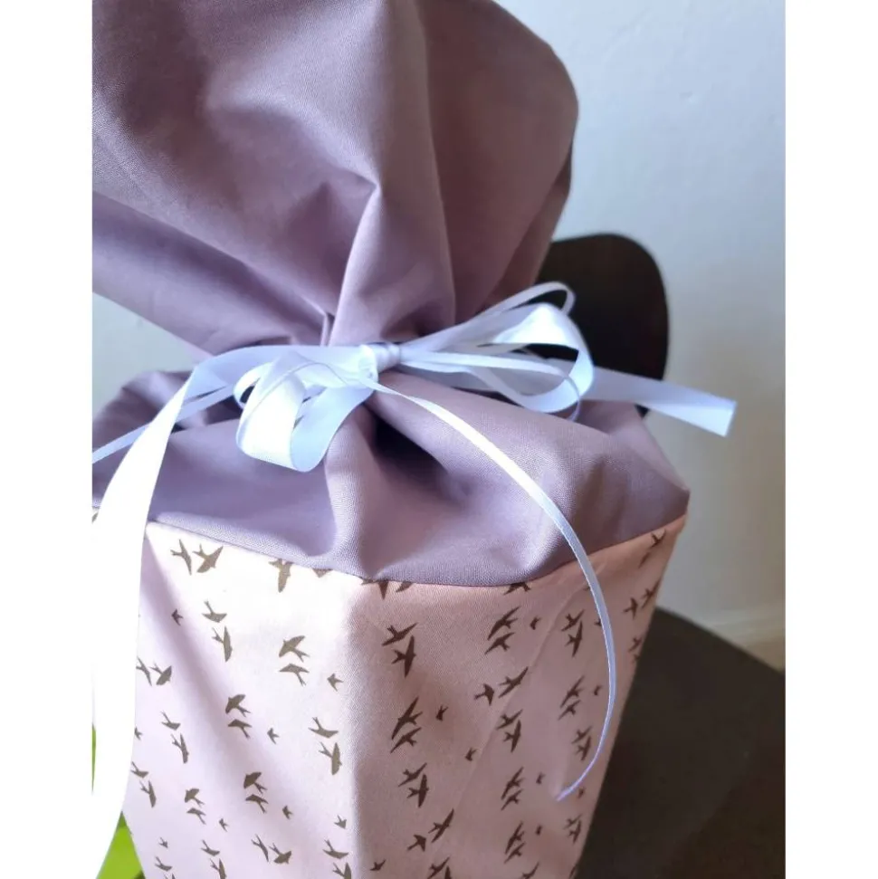 Die Schultüte ist aus Baumwolle mit Schwalben-Print genäht und eignet sich für 85cm Papprohlinge. Sie hat etwas Spiel, sodass sie sowohl für eckige, als auch runde Rohlinge genutzt werden kann.