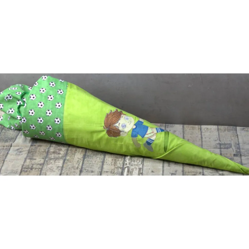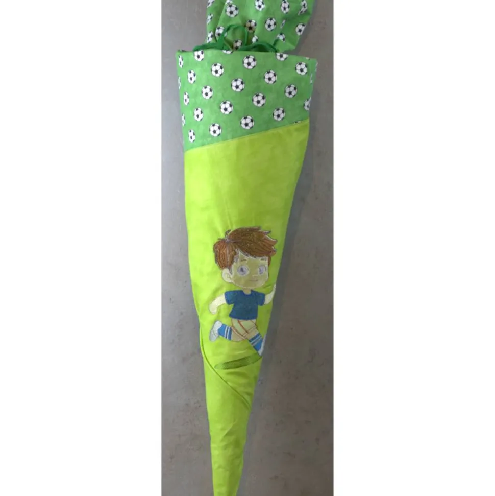 Entdecke die vielseitige Schultüte aus Stoff mit besticktem Fußball-Motiv!