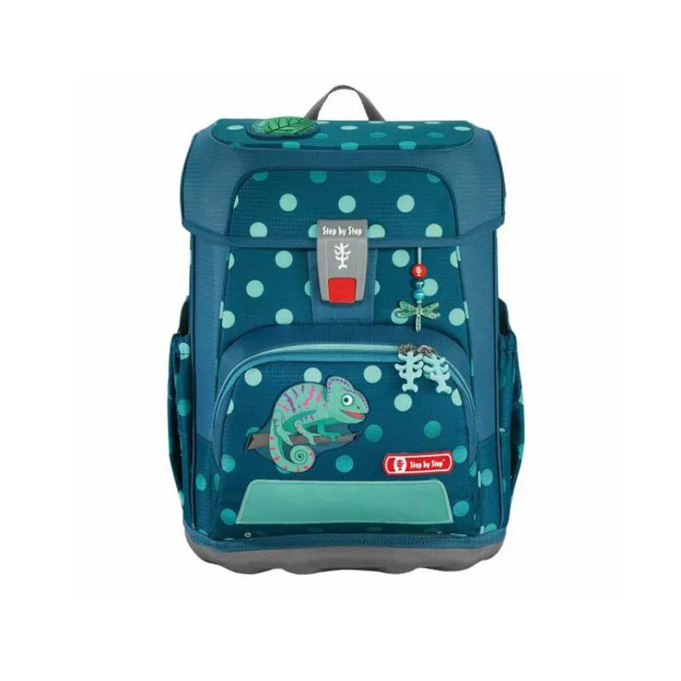 Unsere Schultüte Chamäleon haben wir passend zum Step by Step Schulranzen Tropical Chameleon entworfen. Das grasgrüne Chamäleon auf petrol farbenem Untergrund paßt wirklich perfekt zum Schulranzen. Selbstverständlich wird der Schultütenbezug von uns auch mit dem Namen und dem Einschulungsdatum Ihre Kindes bestickt. Da kann die Einschulung ja kommen!