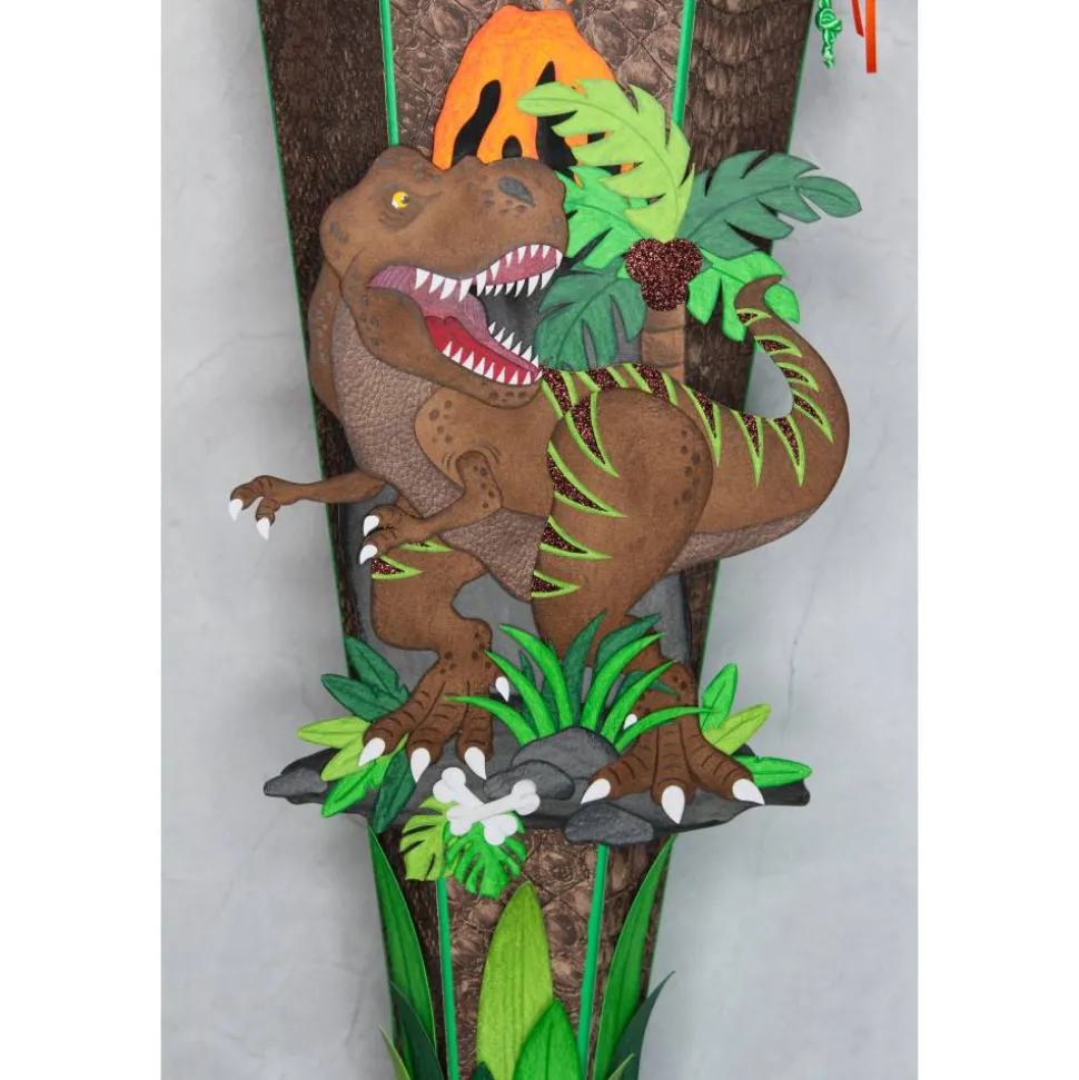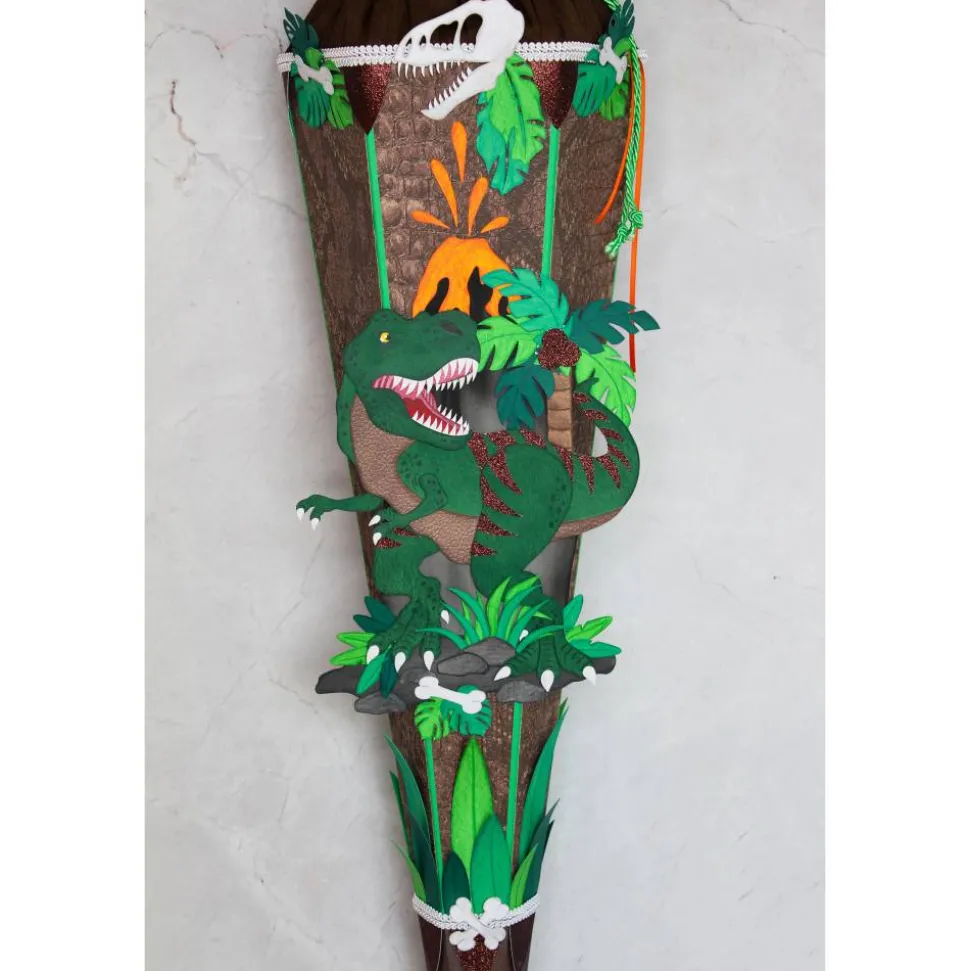 Der erste Schultag ist ein einzigartiger Moment und so einzigartig präsentiert sich die handgefertigte Dinosaurier Schultüte, als eindrucksvolles Highlight, für einen unvergesslichen Schulanfang.