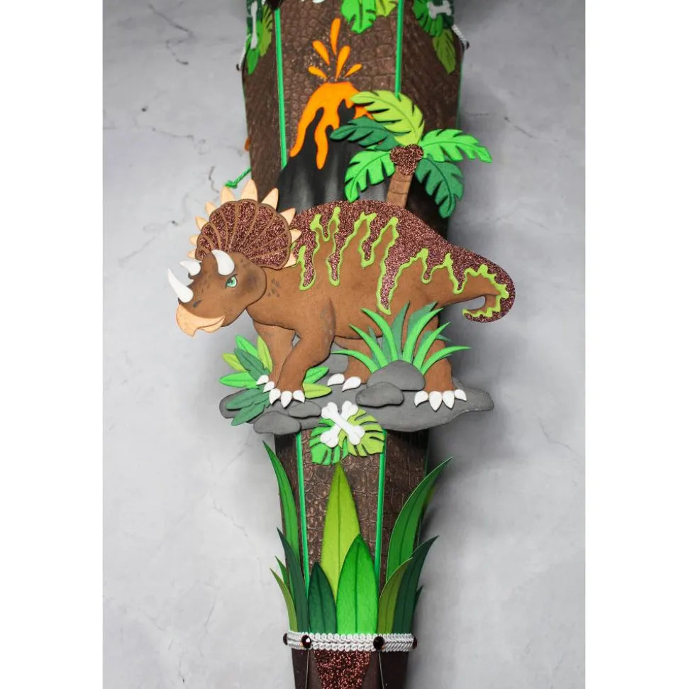 Der erste Schultag ist ein einzigartiger Moment und so einzigartig präsentiert sich die handgefertigte Dinosaurier Schultüte, als eindrucksvolles Highlight, für einen unvergesslichen Schulanfang. Die Schultüte „Zera“ ist mit viel Liebe zum Detail aus hochwertigen Materialien gefertigt.