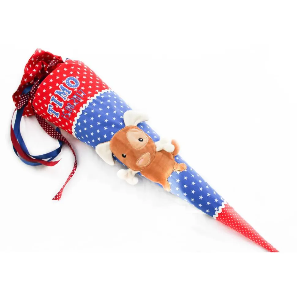 Unsere Schultüten werden bei uns im Atelier in Alfter aus 100% Baumwolle (Ökotex100) handgefertigt, mit deinem Wunschnamen/-datum und Motiv maschinenbestickt und können sehr gerne passend zum Schulranzen oder nach den Lieblingsfarben deines Kindes angefertigt werden.