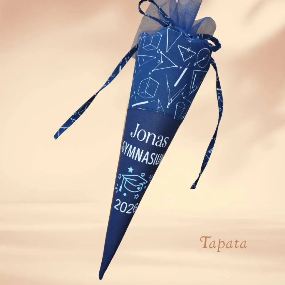 ➡ Namenswunsch: Auf Wunsch kann die Abschlusstüte mit dem Namen des Absolventen versehen werden. Bitte geben Sie in das Feld Personalisierungswünsche den Namen ein. Max. 12 Zeichen (Sonderzeichen nur nach Rücksprache). Je nach Länge wird die Positionierung des Namens und die Größe angepasst.