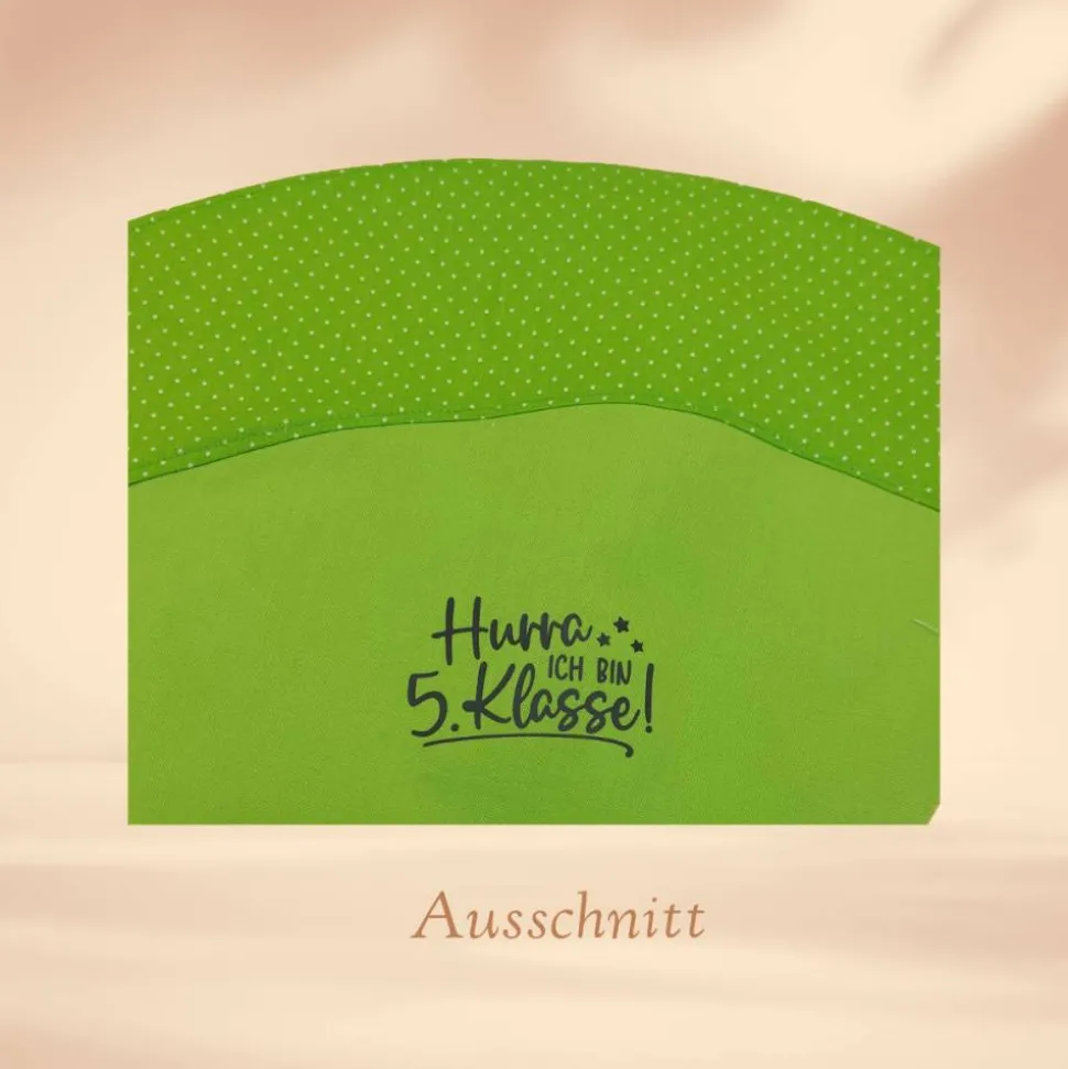 ➡ Standardmäßig wird angedruckt: „Hurra ich bin 5. Klasse“ (Design vom Motiv stammt von „SteffisKreativkiste“)