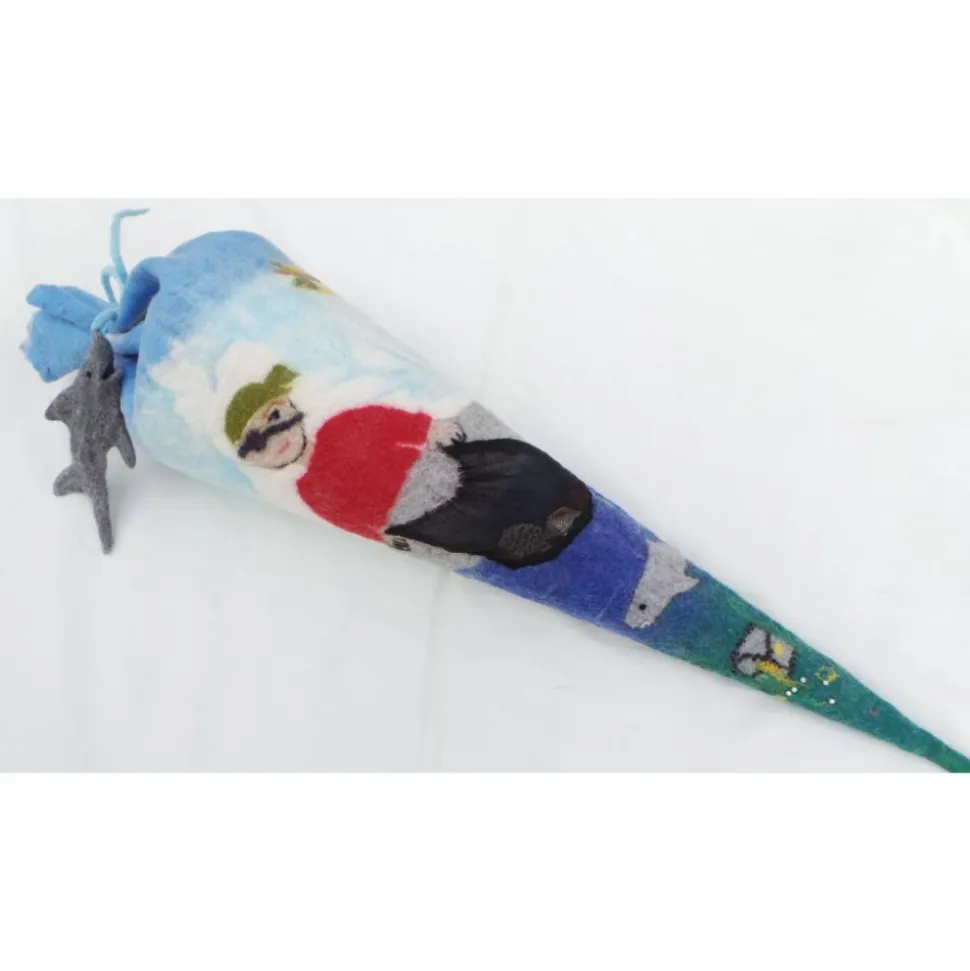 Bitte beachten Sie, dass ich nur die Filzhülle liefere. Sie kaufen im Bastelgeschäft einen Schultüten-Rohling von 70 cm oder 100 cm. Ich liefere die passende Hülle dazu. Die gefilzte Schultüten-Hülle ist dann 90 cm, bzw. 110 cm groß. Der Papprohling muss dann nur noch in die Hülle eingeschoben werden. Damit ersparen wir uns hohe Portokosten und riesige Pakete.