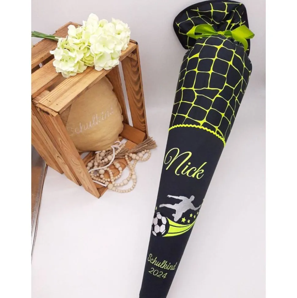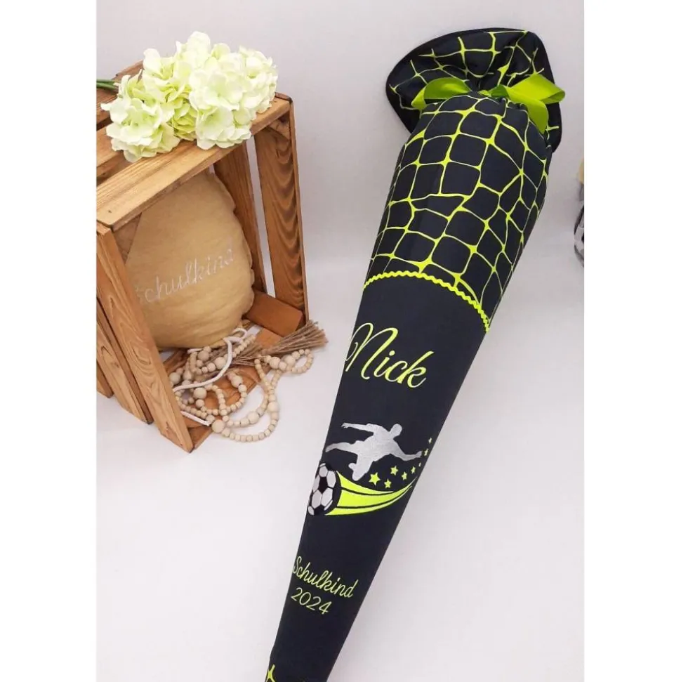 Die Schultüte wird mit dem Namen des Kindes und z.B. Schulkind 202* bestickt.