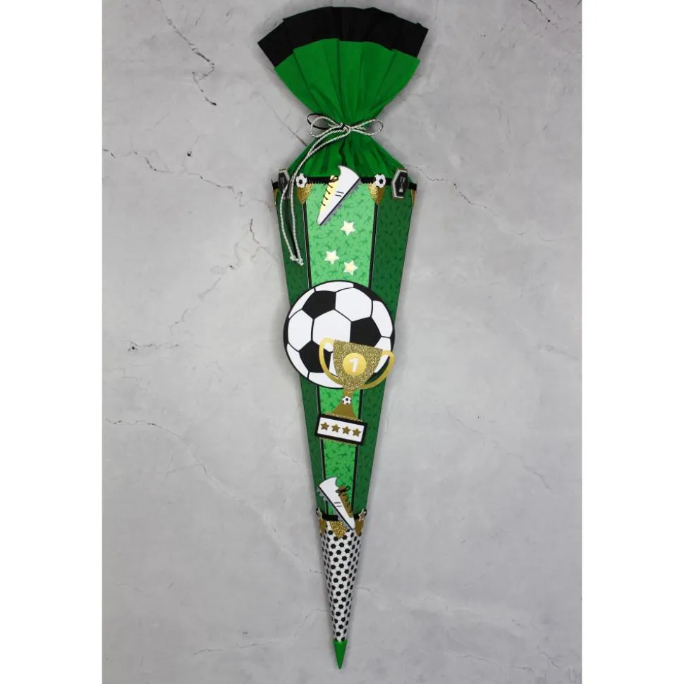 Gefertigt ist sie auf einem 6-eckigen, stabile Schultütenrohling der Firma Roth und hat eine Höhe von 85 cm. Für kleinen Fußball-Fans ist die Schultüte bestimmt ein Highlight an Ihrem ersten Schultag!