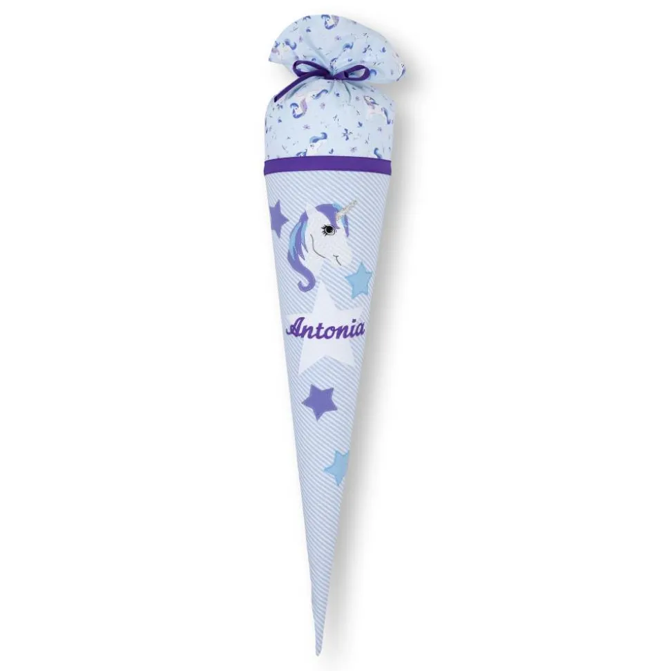 Handgefertigte Schultüte aus Stoff . Detailverliebt bestickt mit Einhorn .