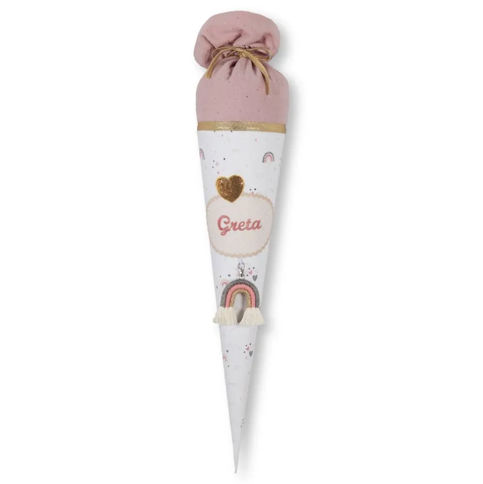 Die Schultüte aus Stoff wird befüllfertig mit Papprohling geliefert.