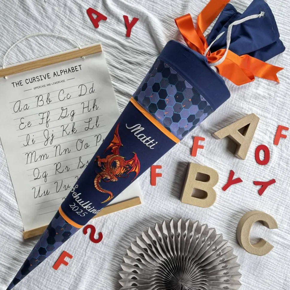 Unsere handgefertigten Schultüten überzeugen nicht nur optisch, sondern sind auch nachhaltig: Nach der Einschulung kann sie in ein kuscheliges Kissen verwandelt werden – eine tolle Erinnerung an den großen Tag!