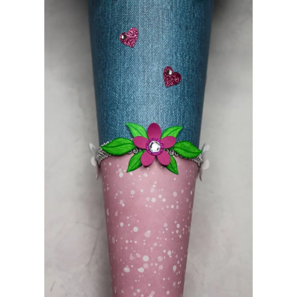 Je nach Bestand können kleine Details wie Schmucksteine, Schleifenband, Glitterkarton und Tüll in Art und Farbe variieren, aber immer passend zu Schultüte.