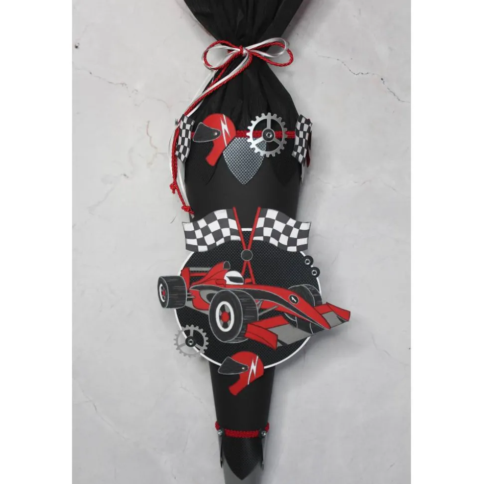 Für alle kleinen Fans des Motorsports, ist das Motiv „Rennwagen“ auf einer Schultüte gar nicht mehr wegzudenken. Daher habe ich Euch den Rennwagen „KA 1“ sehr detailliert entworfen.