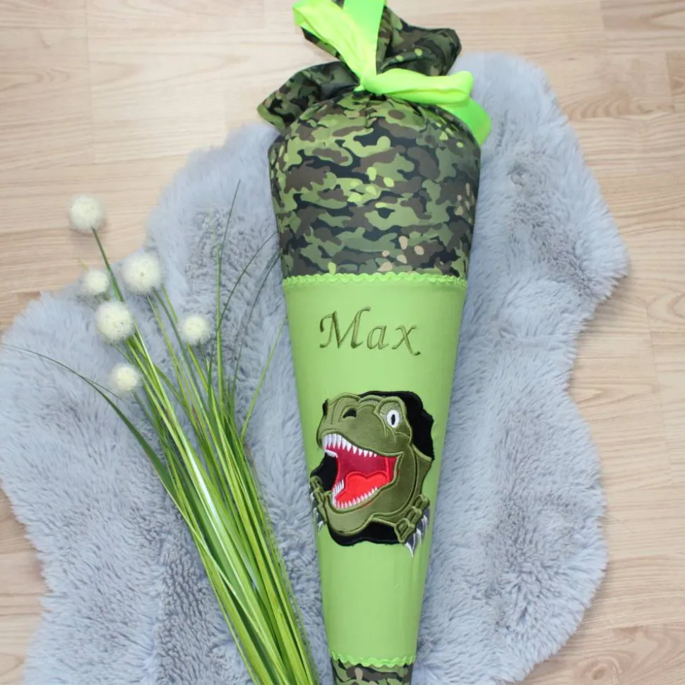 Schultüte.  Schultüte Baumwolle. Schultüte Dino. Schultüte Junge.
