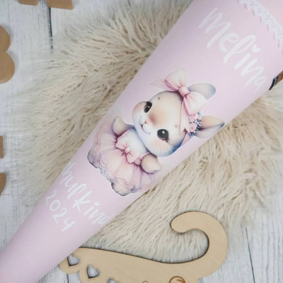 Schultüte Stoff Ballerina Hase Rosa Regenbogen Glitzer  Tüll 70cm 85cm   *personalisierbar und mit K
