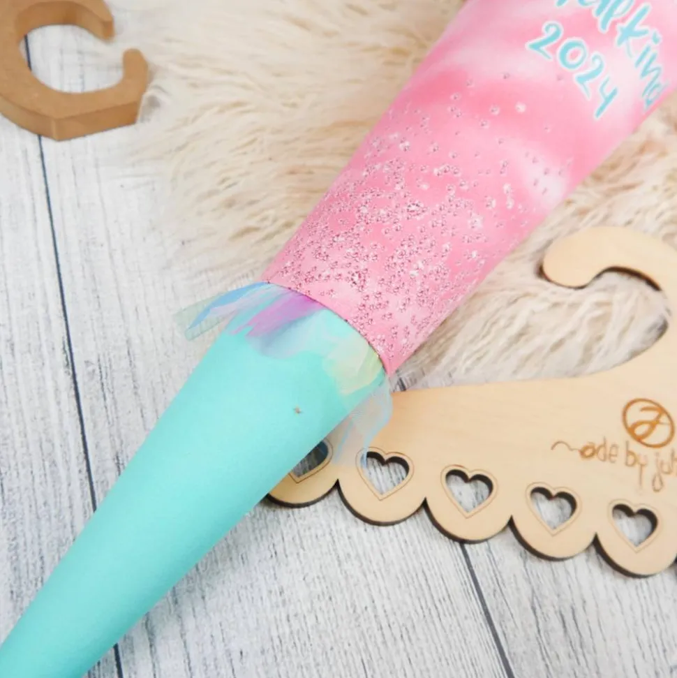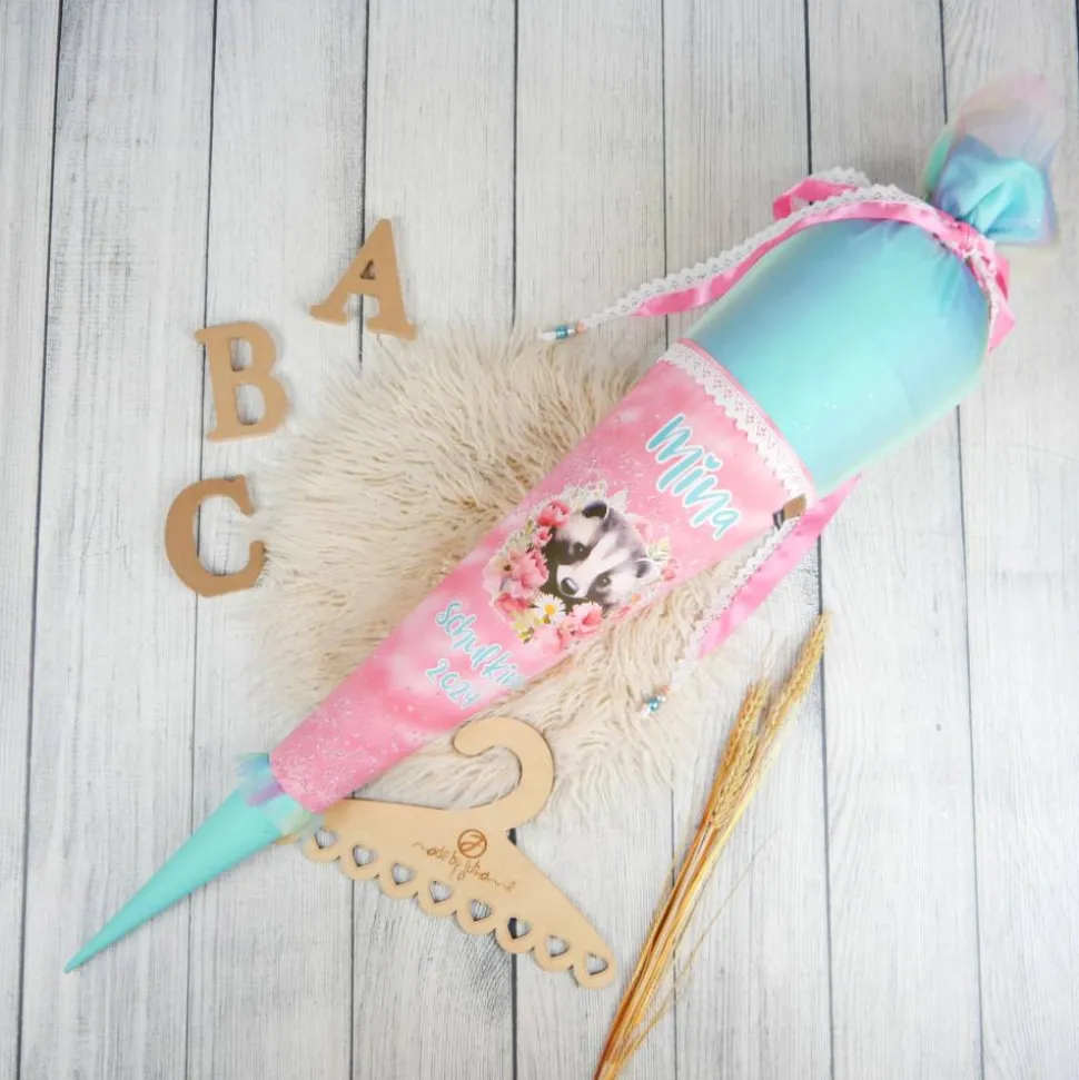 Schultüte Stoff Dachs Türkis Rosa Pink  mit Tüll 70cm 85cm   *personalisierbar und mit Kisseninlet