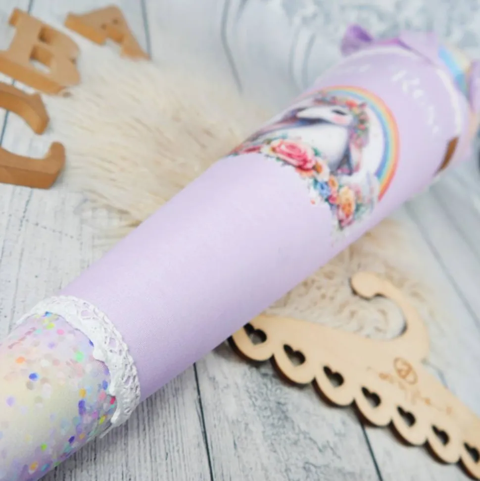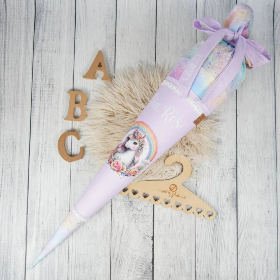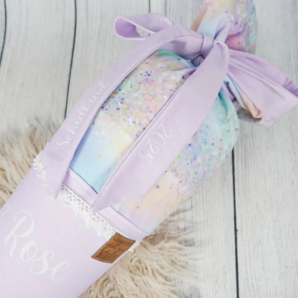 Schultüte Stoff Einhorn Regenbogen bunt Flieder 70cm 85cm   *personalisierbar und mit Kisseninlet