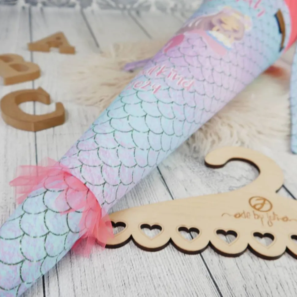 Schultüte Stoff Meerjungfrau mit Schuppen mit Tüll 70cm 85cm   *personalisierbar und mit Kisseninlet
