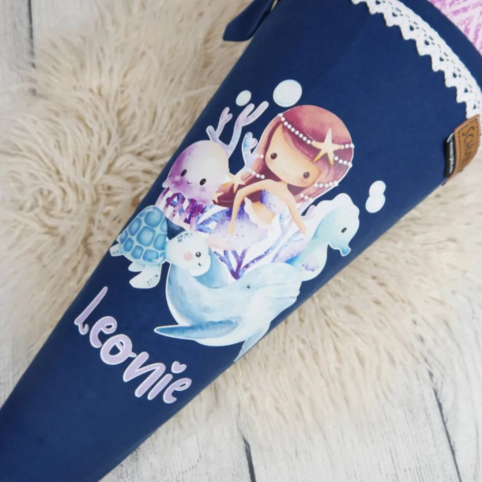 Schultüte Stoff Meerjungfrau Unterwasser Lila Blau 70cm 85cm   *personalisierbar und mit Kisseninlet