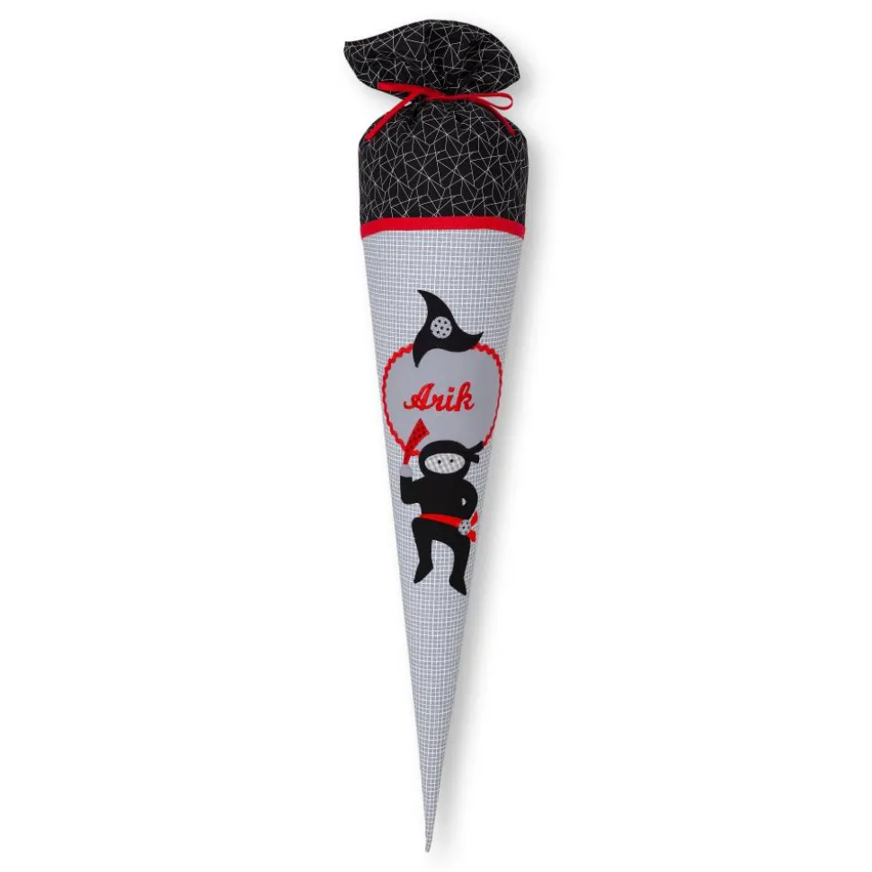 Die Schultüte aus Stoff wird befüllfertig mit Papprohling geliefert.