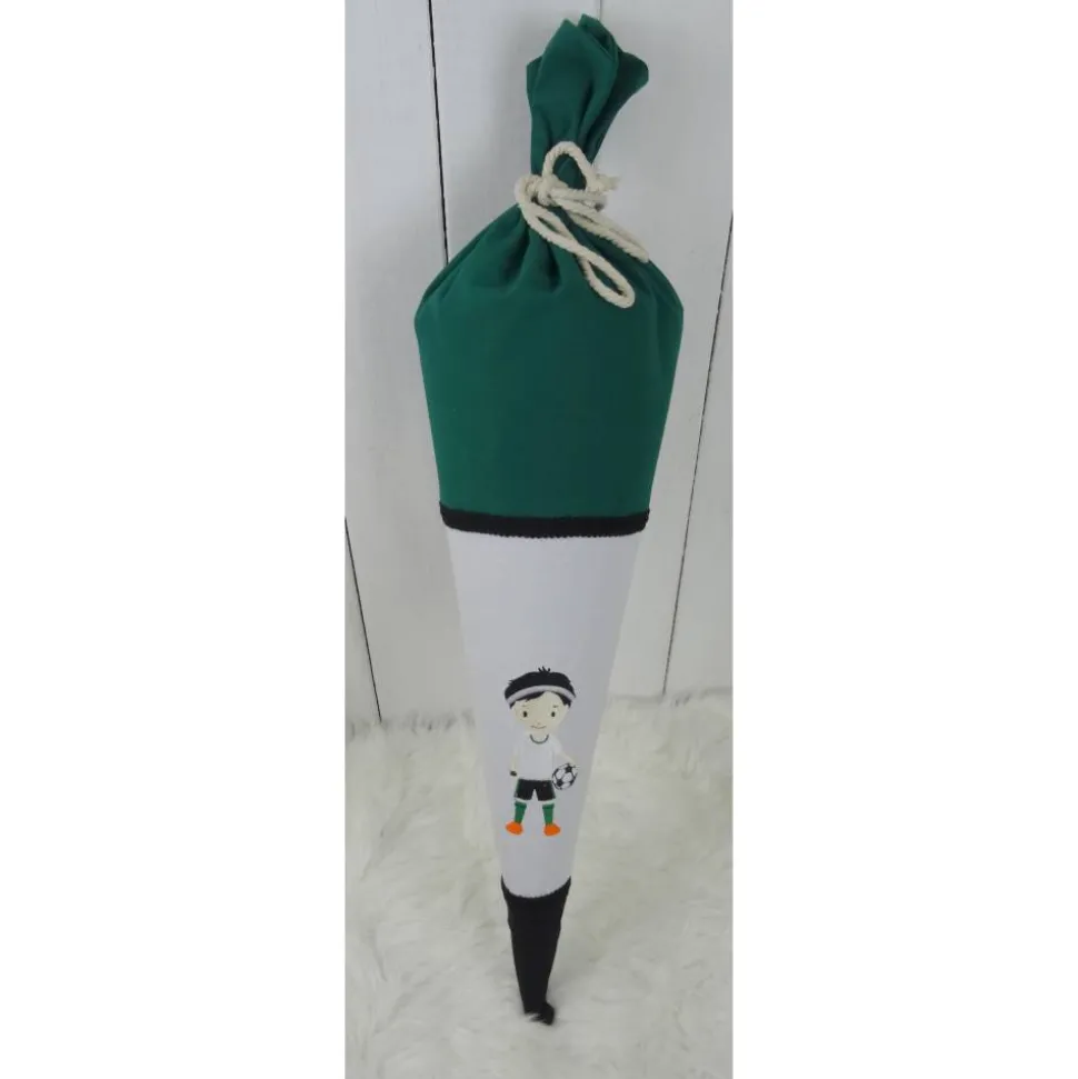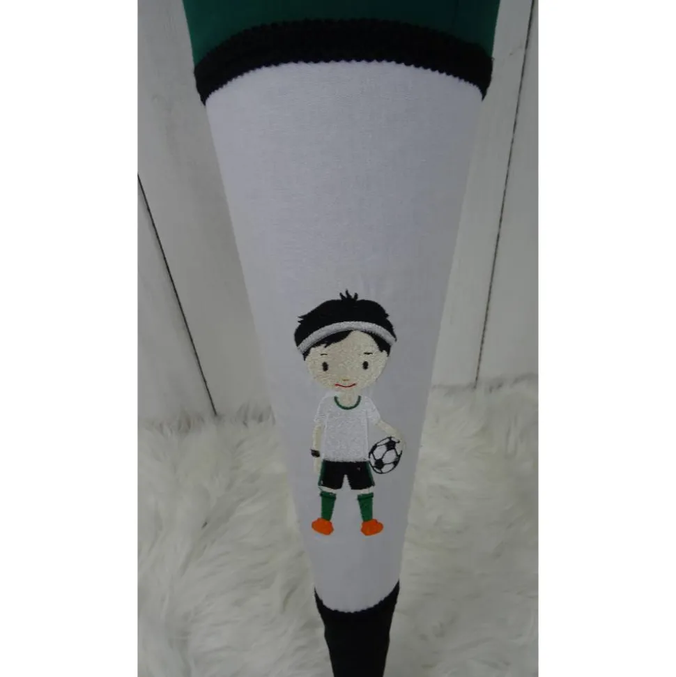 Die hier gezeigte Schultüte ist mit einem Fussballer von MariLena ( bestickt. Zur Auswahl stehen noch jede Menge andere Motive. Auch hiervon übermittele ich gerne Fotos.