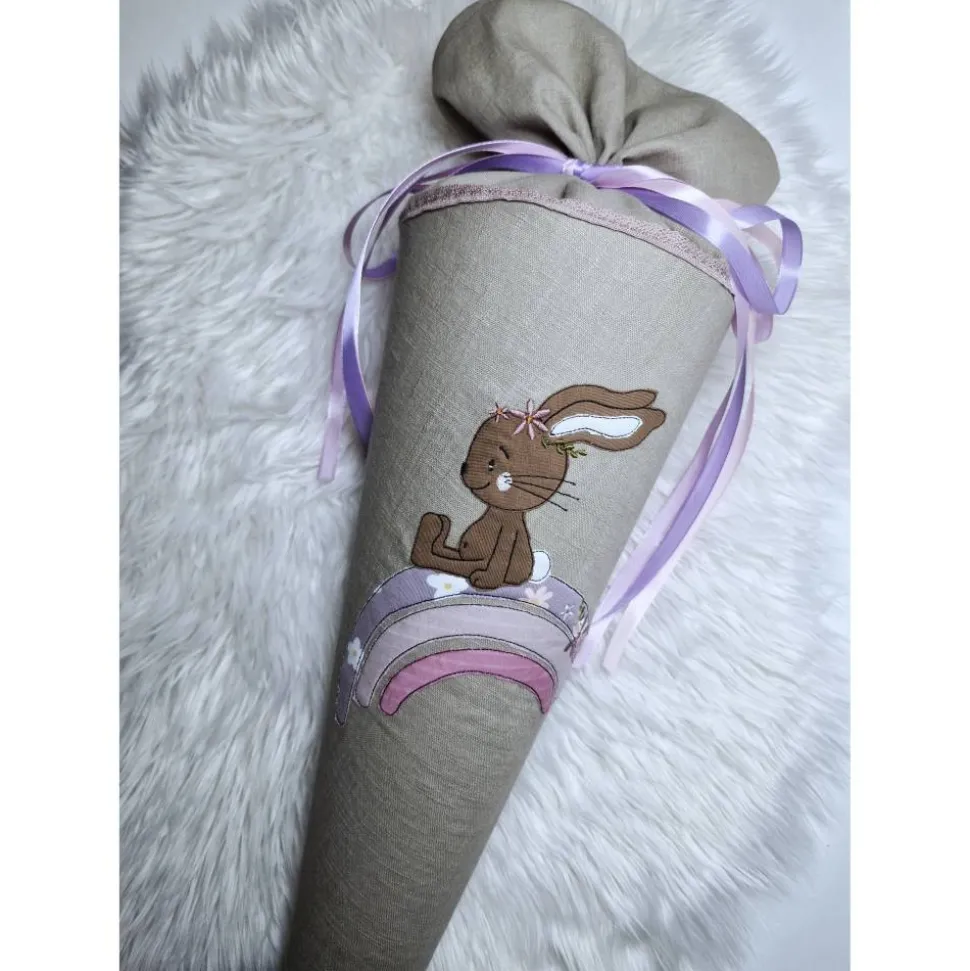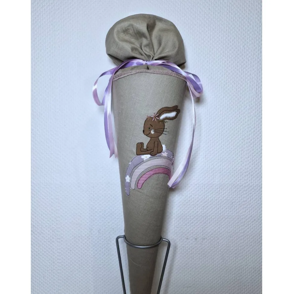 Dies ist eine Schultüte für alle Leinen- und Naturfarbenfreunde mit einer bezaubernden Stickerei. Der beigefarbene Stoff ist ein Leinenstoff.