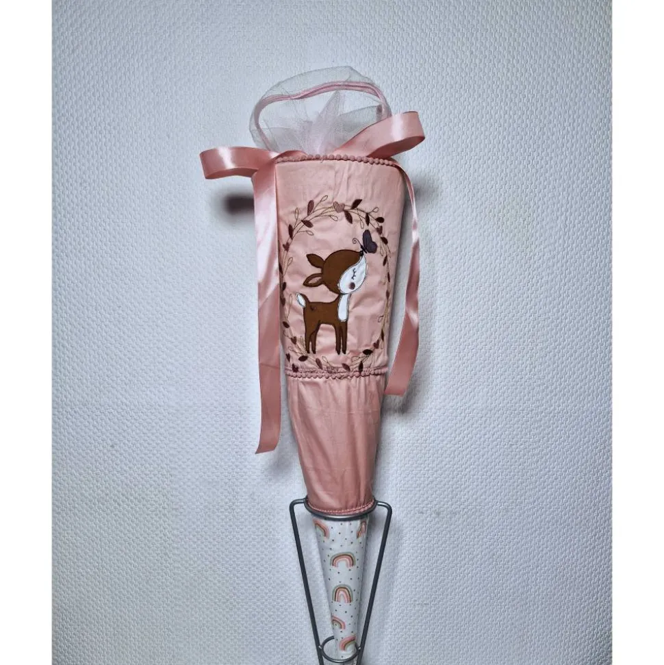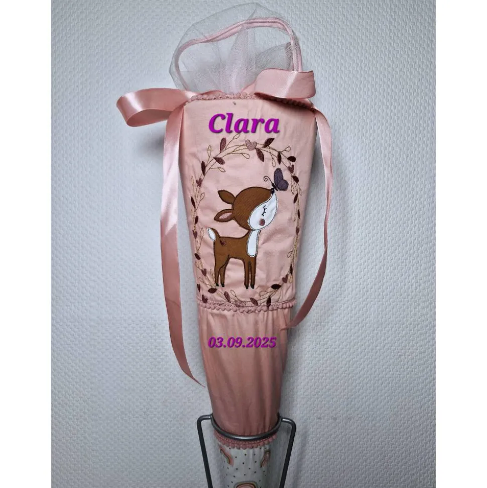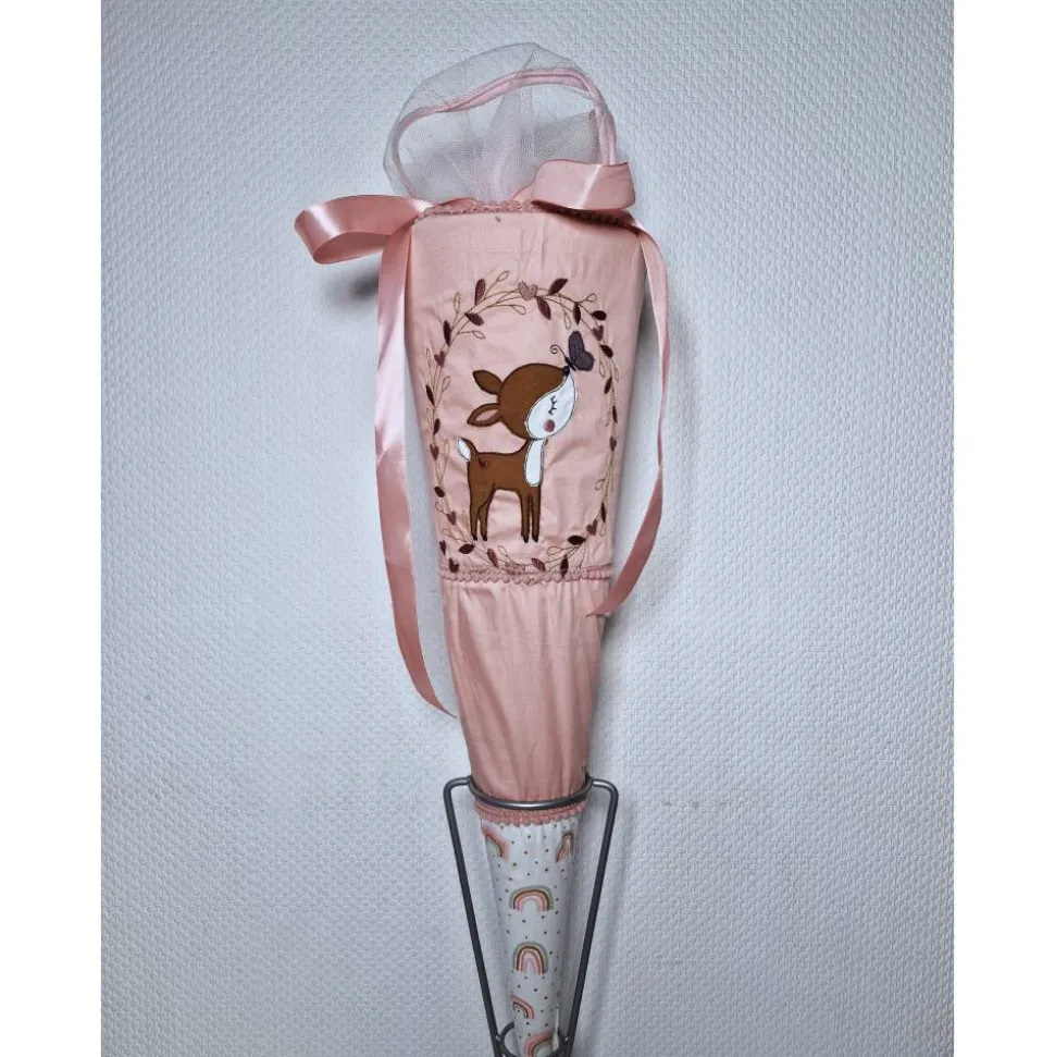 Dies ist eine Schultüte für Mädchen mit einem gestickten Butterfly Rehkitz.