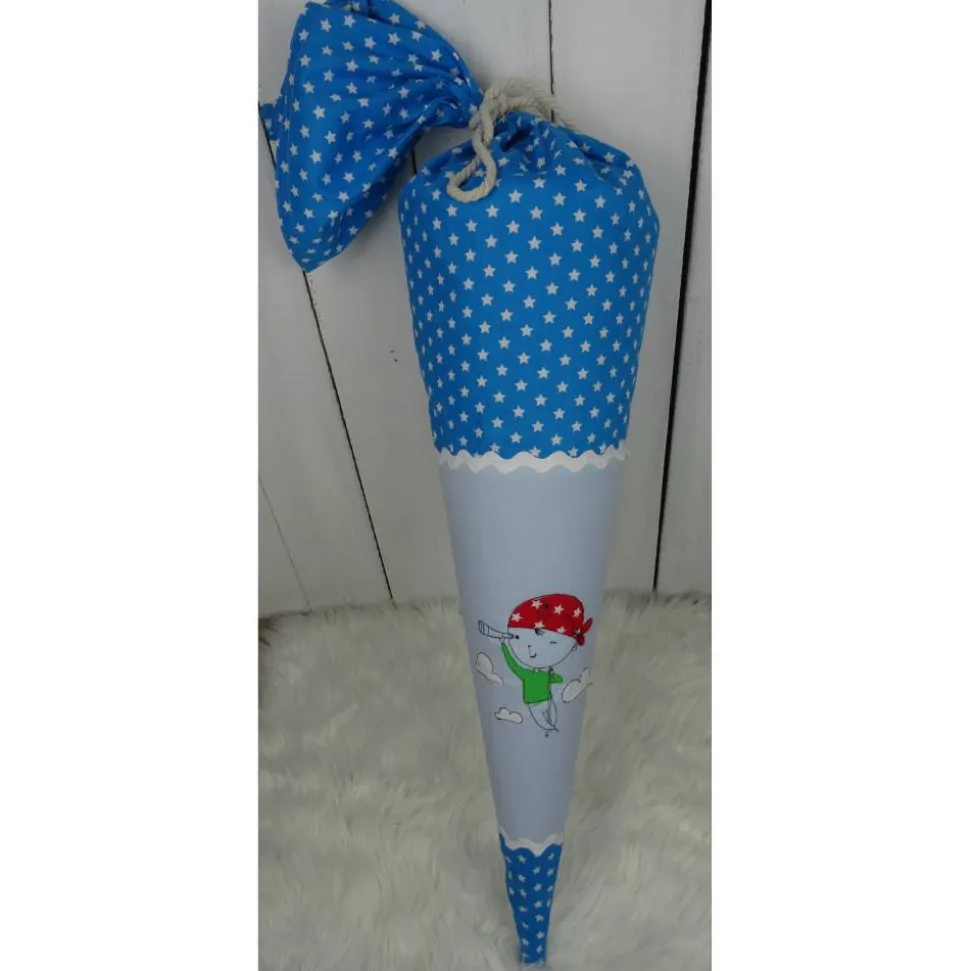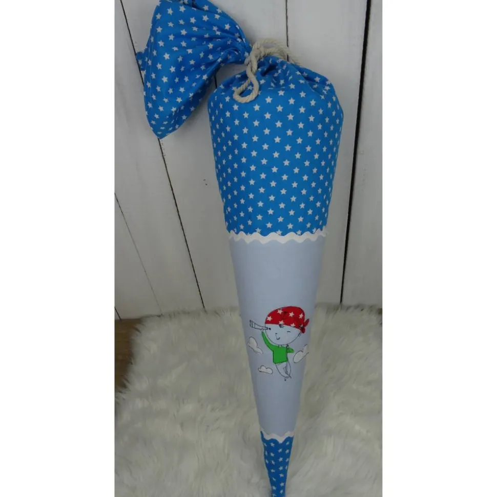 Die hier gezeigte Schultüte ist mit einem Piraten von Rock-Queen ( bestickt. Zur Auswahl stehen noch jede Menge andere Motive. Auch hiervon übermittele ich gerne Fotos.