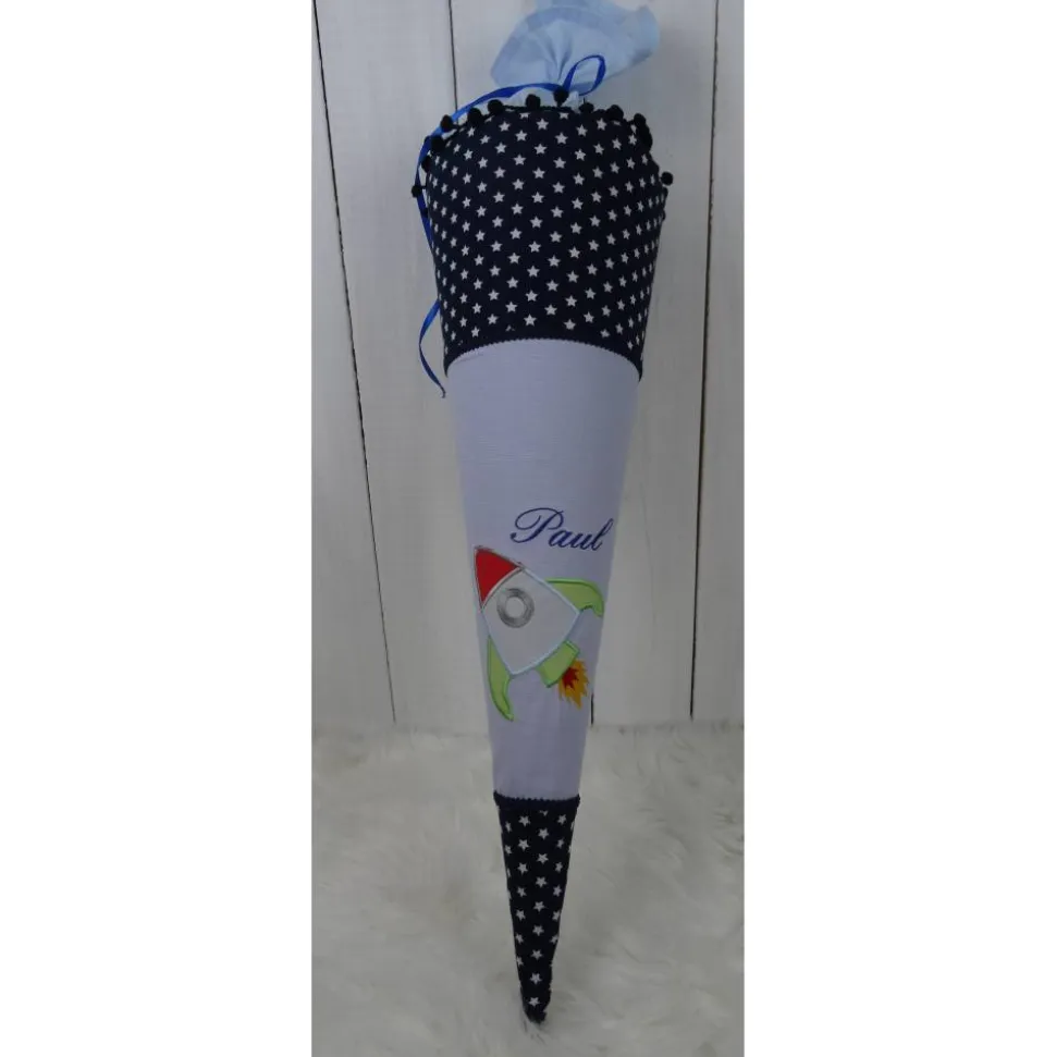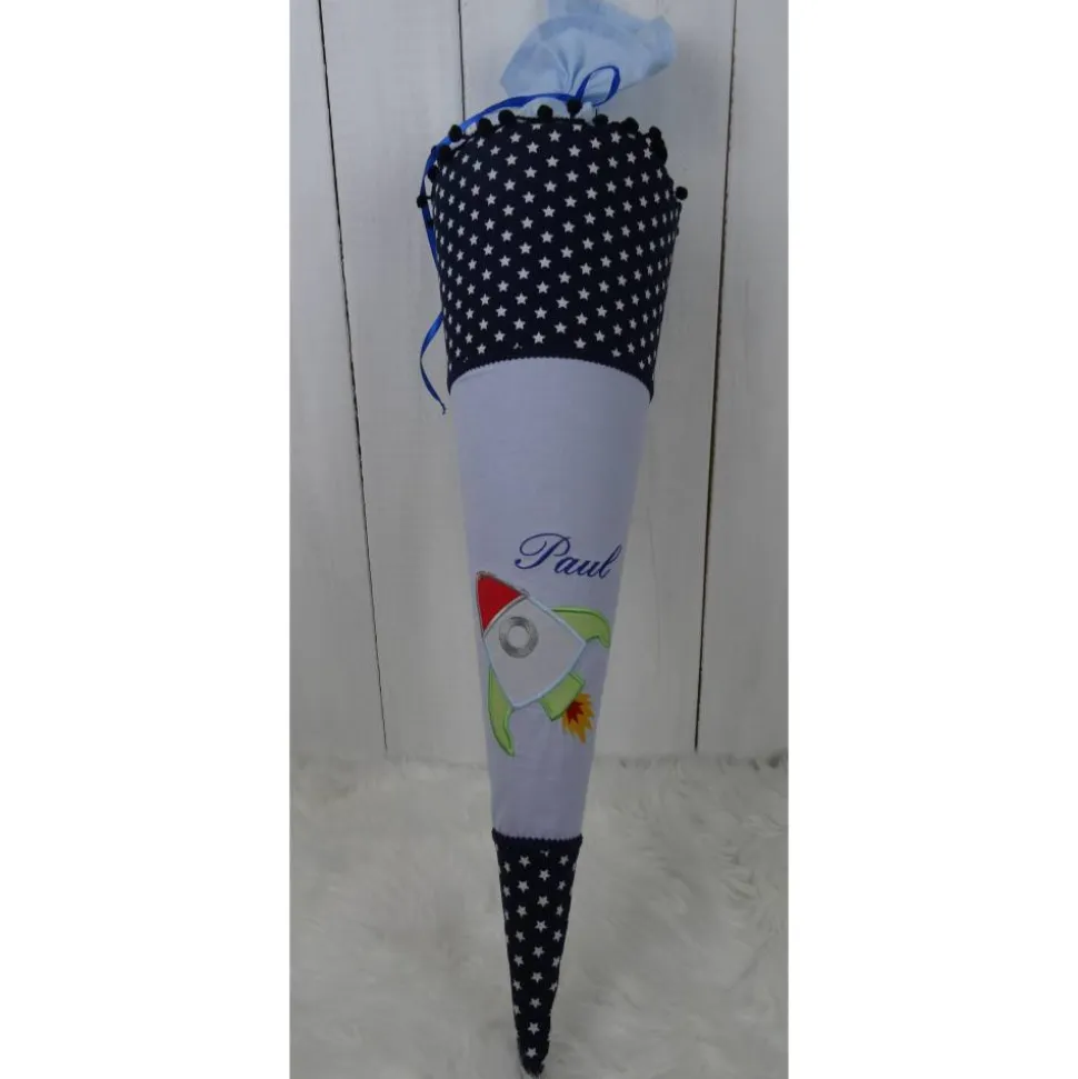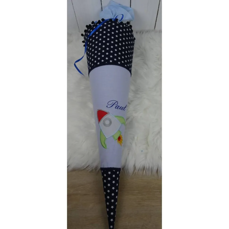 Die hier gezeigte Schultüte ist mit einem Rakete von Rock-Queen ( bestickt. Zur Auswahl stehen noch jede Menge andere Motive. Auch hiervon übermittele ich gerne Fotos.