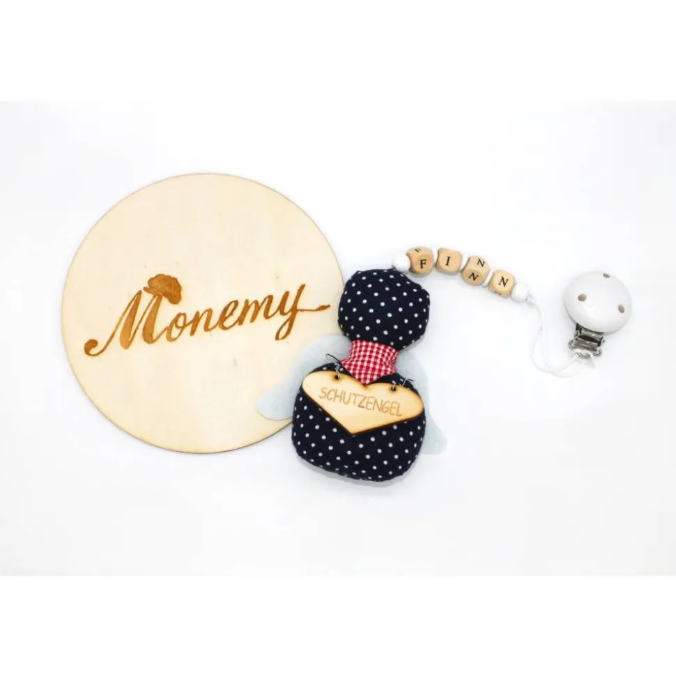 zusätzlich mit Holzclip weiß und Holzherz „Schutzengel“ um den Hals – 20,00 Euro