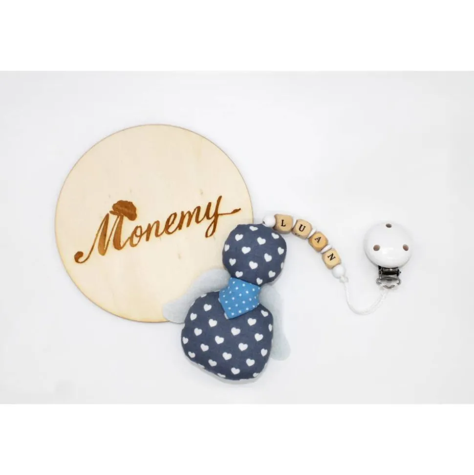 zusätzlich mit Holzclip weiß und Holzherz „Schutzengel“ um den Hals – 20,00 Euro