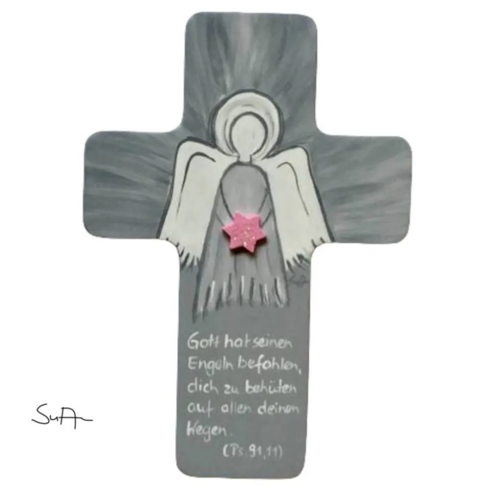 Schutzengel Kreuz für Mädchen Taufkreuz, Kinderkreuz Geschenk zur Taufe / Geburt