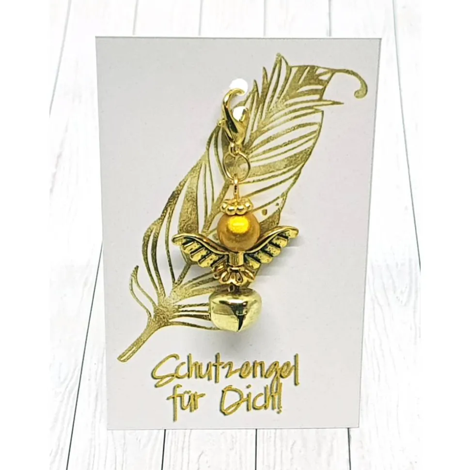 Ob als Geschenk oder zum Selbstbehalten: Der Schutzengel passt in fast jeden Briefkasten und zaubert jedem ein Lächeln ins Gesicht. Jeder Engel ist mit einem Karabiner ausgestattet und hängt an einer stilvollen Schmuckkarte.