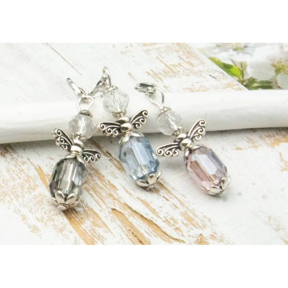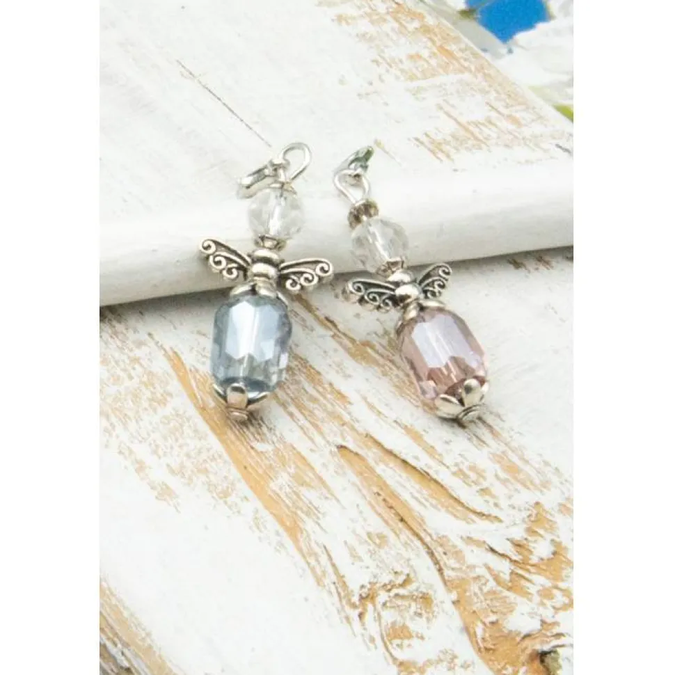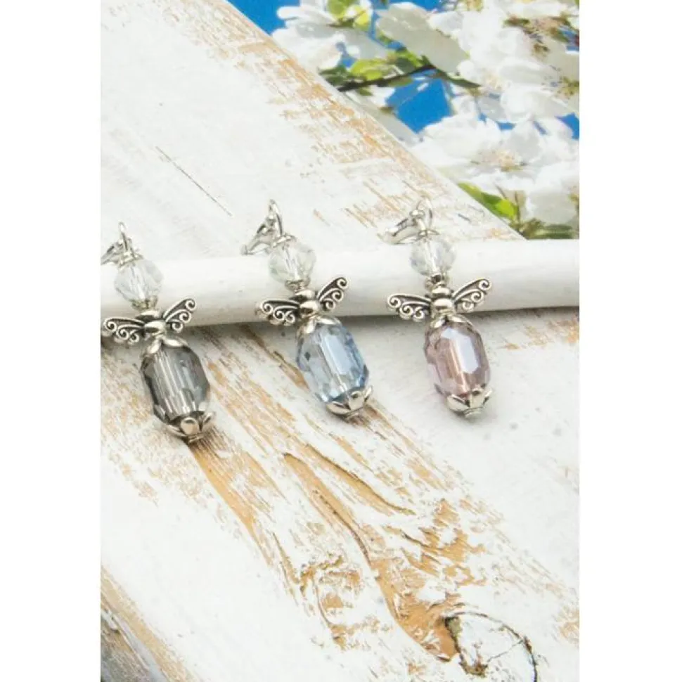 Drei wunderschöne, individuelle Schutzengelanhänger, aus verschiedenfarbigen Glasschliffperlen, Metallflügeln und Metallelementen mit Metallkarabiner.