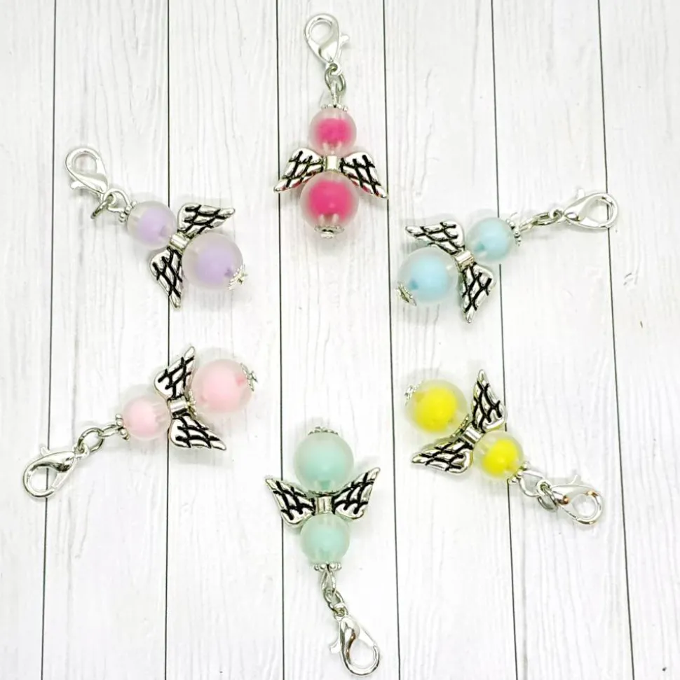 Schutzengel silberfarben / hellgrün sind zauberhafte kleine Glücksbringer, die Du immer gebrauchen kannst. Diese liebevoll gefertigten Schutzengelchen bestehen aus hochwertigen Acrylperlen mit farbigem Kern und einer transparent-gefrosteten Hülle – ein echter Blickfang!
