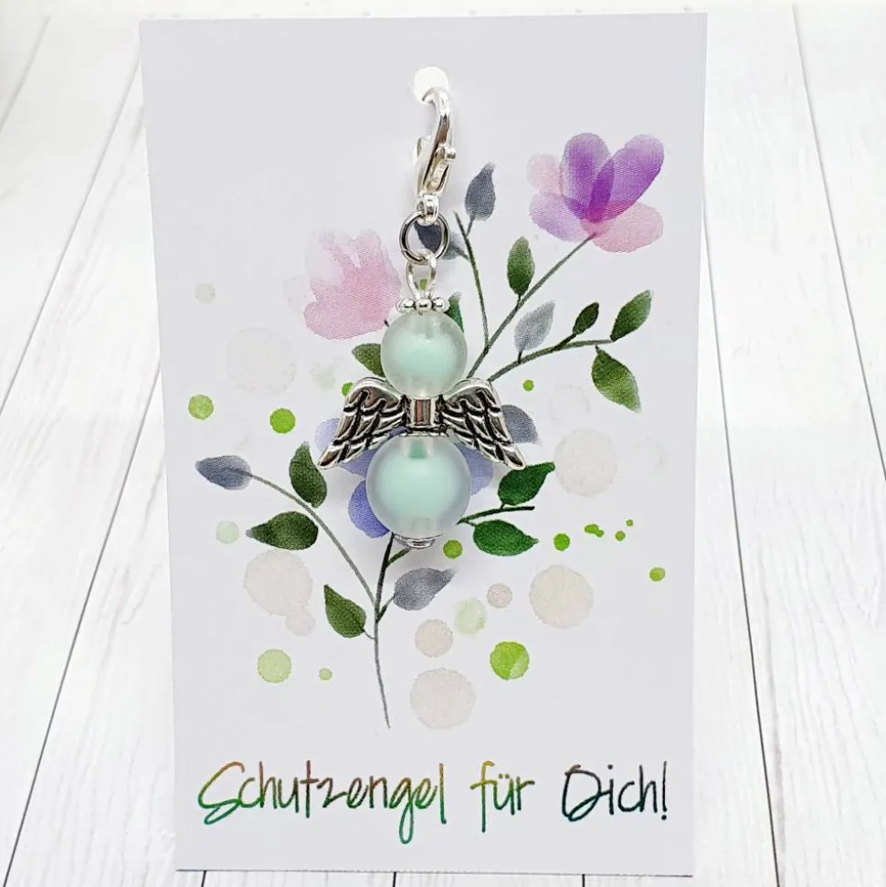 Ob als Mitbringsel, Gastgeschenk für eine Feier oder ein Kaffeekränzchen unter Freundinnen – dieses Schutzengelchen sorgt immer für Freude. Zu jedem Anhänger gehört ein kleines Schmuckkärtchen, das Du aus verschiedenen Designs frei wählen kannst. Gib bei der Bestellung einfach die gewünschte Kennung an.