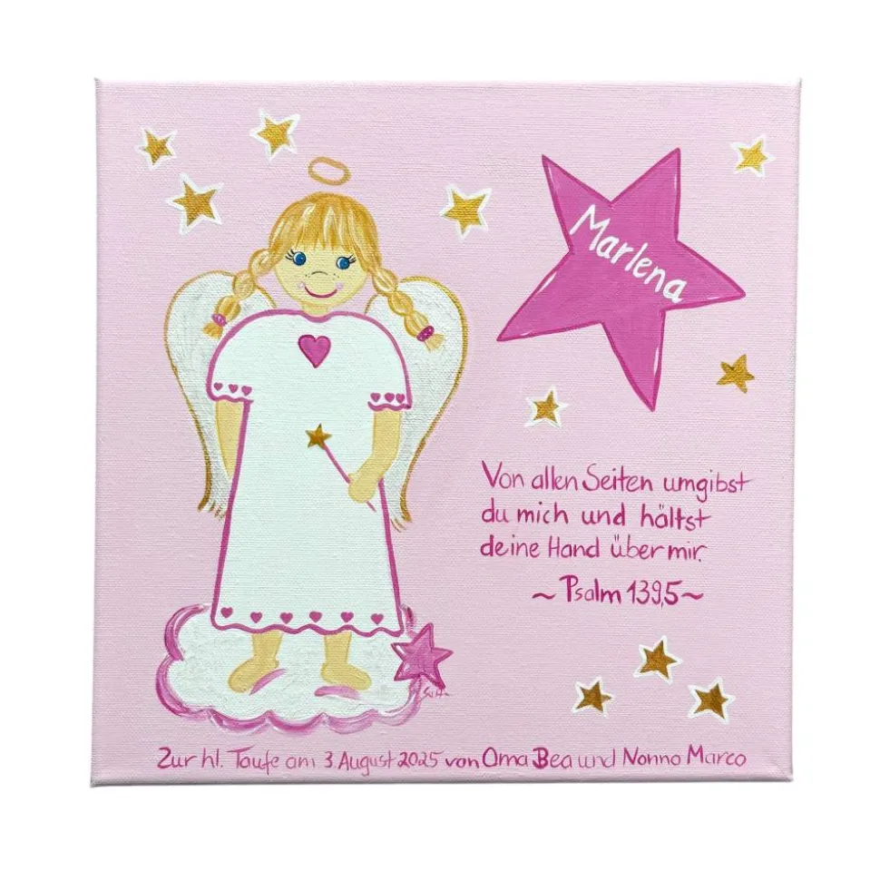 Ich bin dein Engel der dich bewacht, ich beschütze dich bei Tag und bei Nacht.