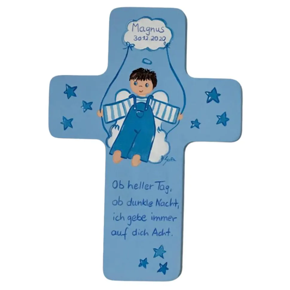 Schutzengelkreuz für Jungs Taufkreuz, Kinderkreuz Geschenk zur Taufe / Geburt