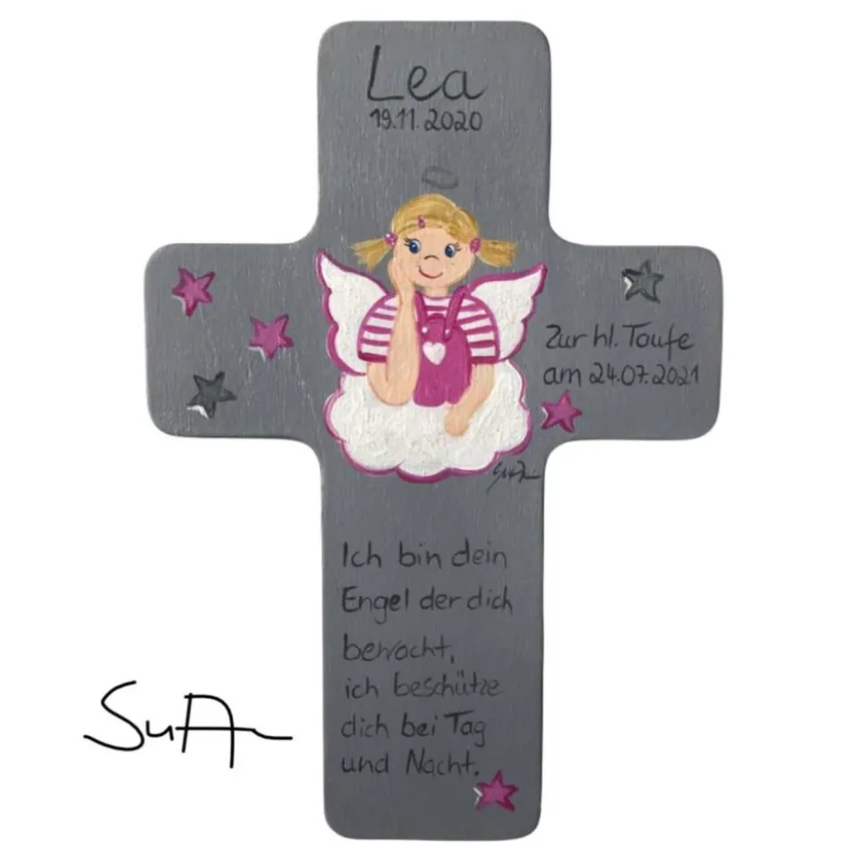 Schutzengelkreuz für Mädchen Taufkreuz, Kinderkreuz Geschenk zur Taufe / Geburt