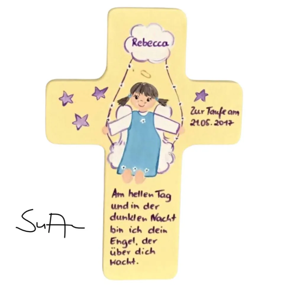 Schutzengelkreuz für Mädchen Taufkreuz, Kinderkreuz Geschenk zur Taufe / Geburt