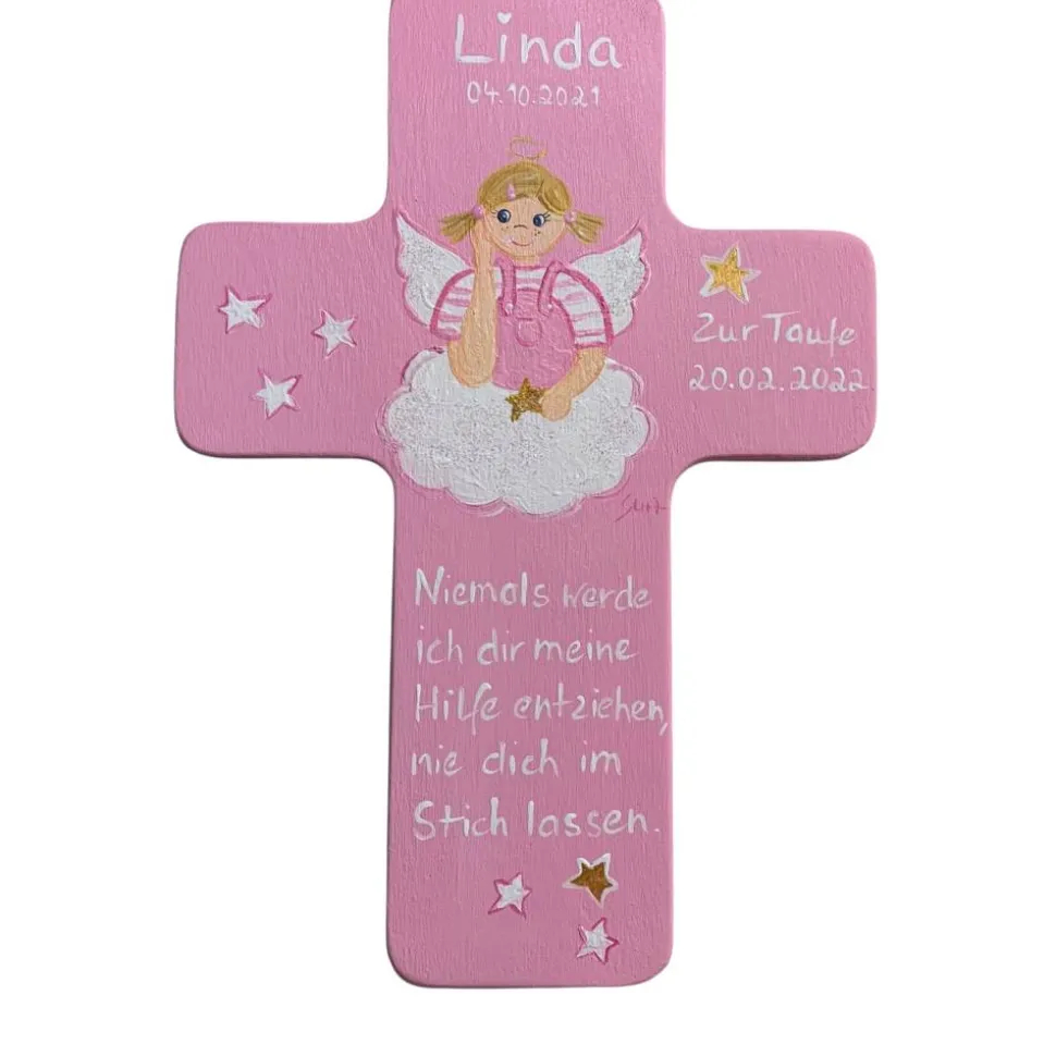 Schutzengelkreuz für Mädchen Taufkreuz, Kinderkreuz Geschenk zur Taufe / Geburt