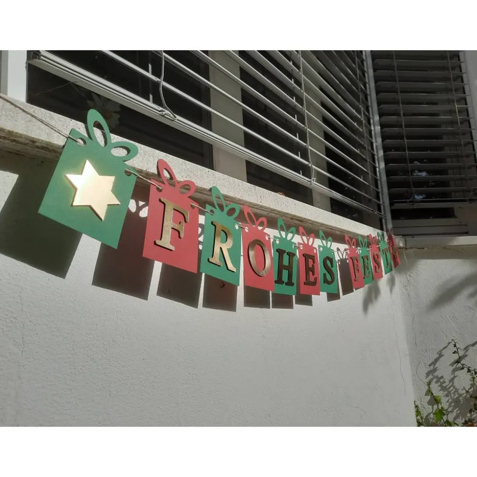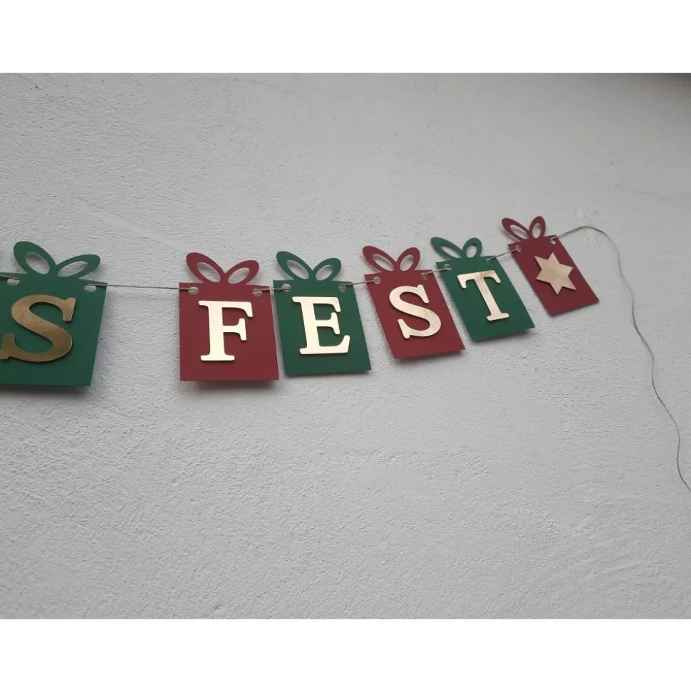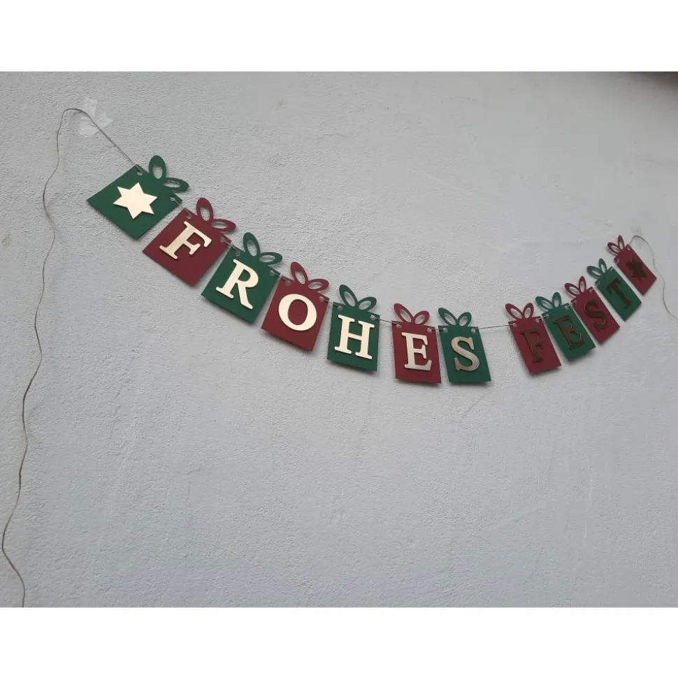 Die glänzende goldene Aufschrift „Frohes Fest“ ist 3 dimensional aufgesetzt und verleiht der Girlande einen ganz besonderen Wert.