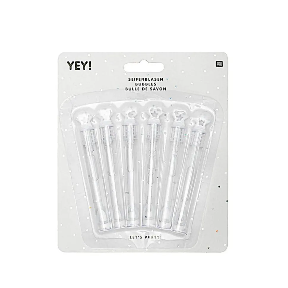 In den kleinen Röhrchen ist Seifenblasen-Füllung enthalten. Für die perfekte Party.
