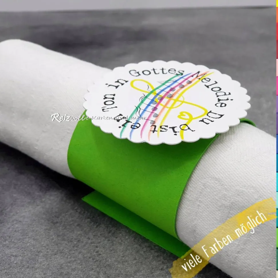 Feiere die Kommunion mit einem besonderen Akzent: Der Serviettenhalter zum Thema „Du bist ein Ton in Gottes Melodie“ verleiht deiner Festtafel eine persönliche Note. Wähle aus verschiedenen Farben (siehe Bild), um perfekt zu deiner Dekoration zu passen.
