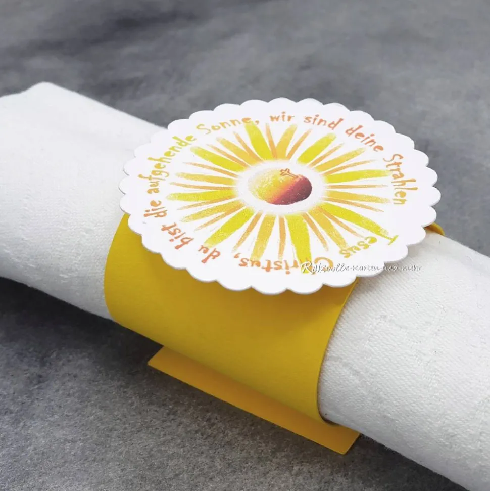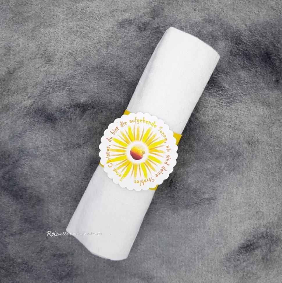 Entdecke den einzigartigen Serviettenhalter zur Kommunion mit dem Thema: „Jesus Christus, du bist die aufgehende Sonne, wir sind deine Strahlen“.