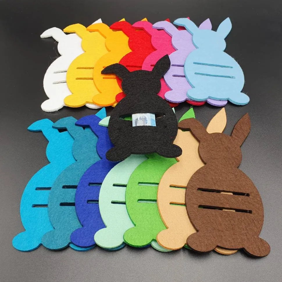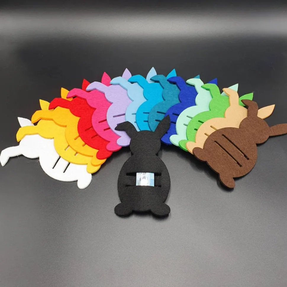 Die Hasen sind aus Filz und ca. 16cm hoch. Sie eignen sich zum direkt so verschenken, können aber auch mit Plott (Flexfolie) oder verschiedenen Stiften verziert und individualisiert werden.