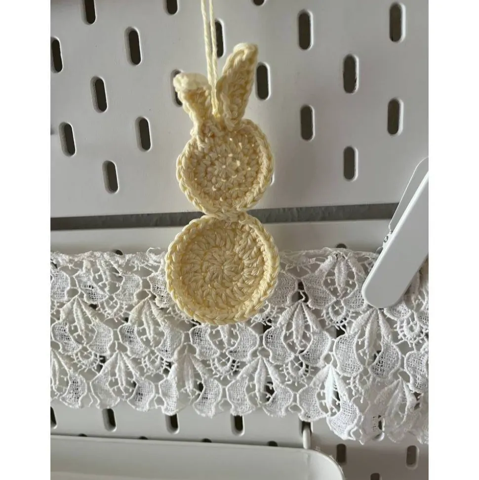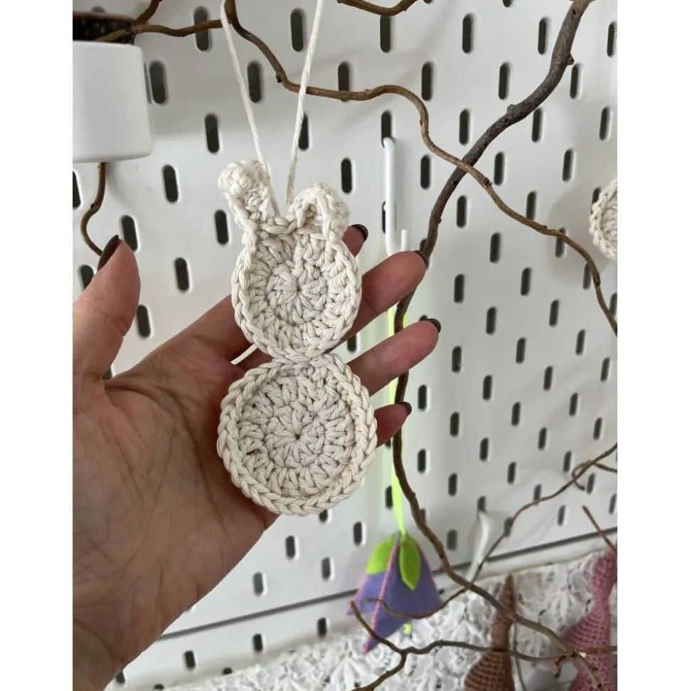 Die Hasen-Anhänger sind in minimalistischem Design gehäkelt für eine stylische FrühlingsDeko.