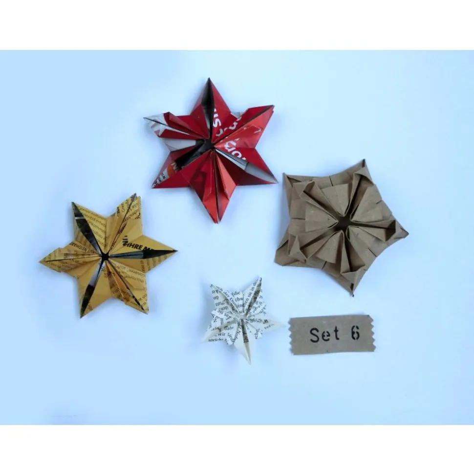 Je nach Zuschnitt kann das Motiv variieren. Das Angebot bezieht sich auf EIN Set mit 2-6 Origami-Sternen wie im zugehörigen Foto abgebildet ohne Teelicht.