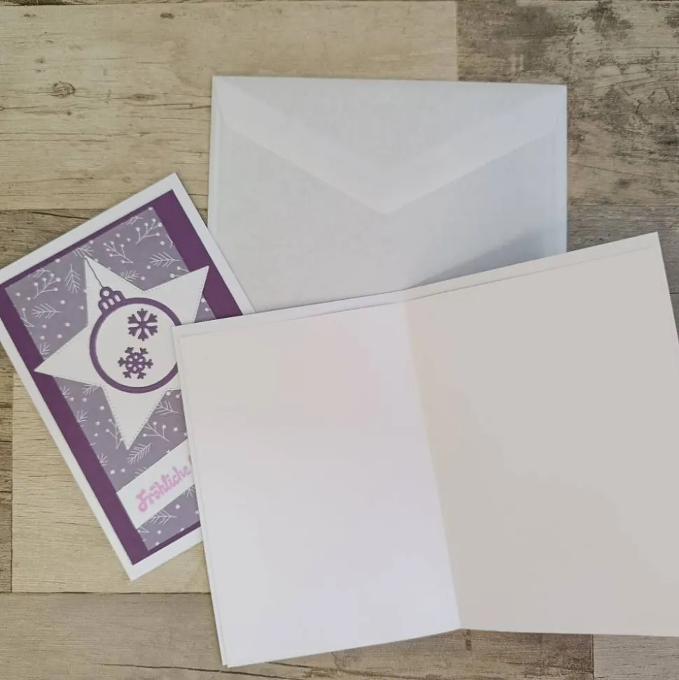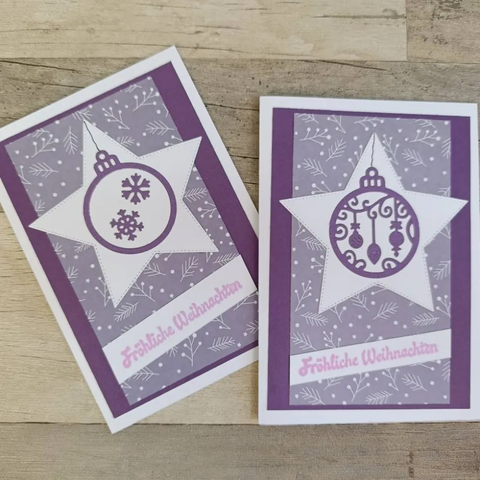 Diese liebevoll handgefertigten Weihnachtskarten werden aus hochwertigem Designpapier gefertigt und mit präzisen Stanz- und Stempeltechniken veredelt. Jede Karte ist ein kleines Unikat, das mit viel Sorgfalt und Liebe zum Detail entsteht. Die Kombination aus ausgeschnittenen Motiven, kunstvollen Stempelabdrücken und harmonisch abgestimmten Farben macht diese Karten zu einem ganz besonderen Blickfang.